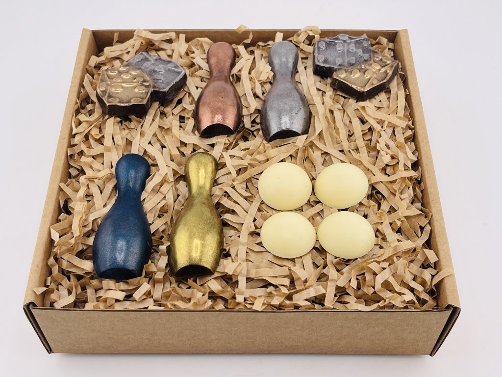 Čokoládová sada Člověče, nezlob se potěší každého, kdo má rád hravé dárky, společné chvíle a poctivou čokoládu. Motiv figurek a kostek připomíná oblíbenou deskovou hru a dělá z této sady originální sladké překvapení. Jemná čokoláda se příjemně rozplývá na jazyku a promění každé sousto v malou radost. Hladká textura a pečlivě vybrané suroviny podtrhují poctivou chuť i kvalitu zpracování. Skvěle se hodí jako dárek k narozeninám, pro milovníky her nebo jako milá pozornost jen tak pro radost. Originální čokoládový dárek z rodinné čokoládovny Chocolenka.