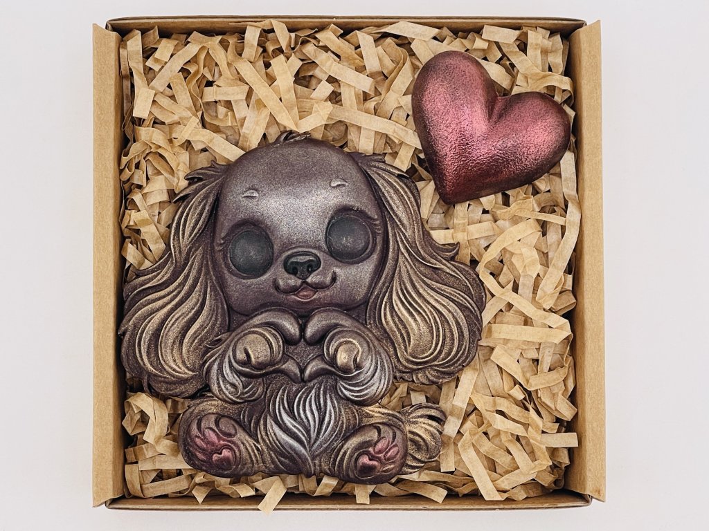 Čokoládová sada Tlapka plná lásky potěší každého, kdo miluje pejsky, něžné detaily a sladké dárky od srdce. Roztomilý pejsek se srdíčkem vytváří kouzelnou kombinaci hravosti, něhy a radosti, která zaujme na první pohled. Jemná hořká čokoláda s plnou kakaovou chutí se příjemně rozplývá na jazyku a promění každé sousto v malý sladký okamžik. Hladká textura a pečlivě vybrané suroviny podtrhují poctivou chuť i radost z kvalitní čokolády. Tato čokoládová sada je krásným dárkem z lásky, pro milovníky psů i jako milá pozornost jen tak pro radost. Originální čokoládový dárek z rodinné čokoládovny Chocolenka.