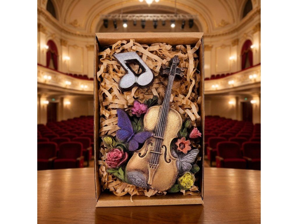 Čokoládová sada Kouzlo houslí je něžný a elegantní dárek pro všechny, kdo milují hudbu, krásu a poctivou čokoládu. Hlavní motiv houslí doplněný květy, motýly a notou vytváří působivou čokoládovou kompozici, která zaujme na první pohled. Jemně hořká čokoláda s plnou kakaovou chutí se příjemně rozplývá na jazyku a potěší hladkou, sametovou texturou. Každý detail spojuje romantiku, originalitu a pečlivé zpracování bez přidaných tuků. Tato čokoládová sada se skvěle hodí jako dárek pro hudebníky, milovníky umění i pro výjimečné slavnostní chvíle. V Chocolence jsme ji vytvořili tak, aby přinesla sladký zážitek plný emocí, něhy a radosti.