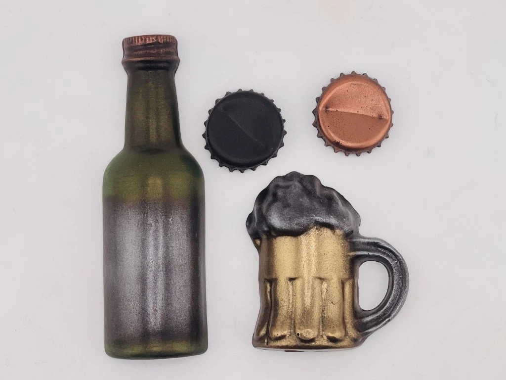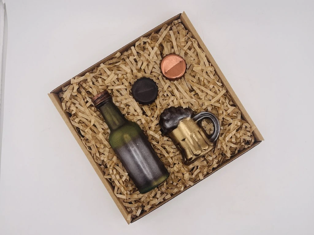 Čokoládová sada Na jedno sladké potěší každého, kdo má rád dobrou náladu, nápadité dárky a čokoládu s vtipem. Motiv lahve, půllitru a pivních uzávěrů vytváří hravou kolekci, která zaujme na první pohled a vykouzlí úsměv hned po rozbalení. Jemná hořká čokoláda s plnou kakaovou chutí se příjemně rozplývá na jazyku a promění každý kousek v sladkou chvíli pohody. Hladká textura a pečlivě vybrané suroviny podtrhují poctivou chuť i radost z každého sousta. Skvěle se hodí jako dárek pro milovníky piva, kamaráda, kolegu nebo jako originální sladké překvapení pro každého, kdo ocení hravý nápad. Originální čokoládový dárek z rodinné čokoládovny Chocolenka.