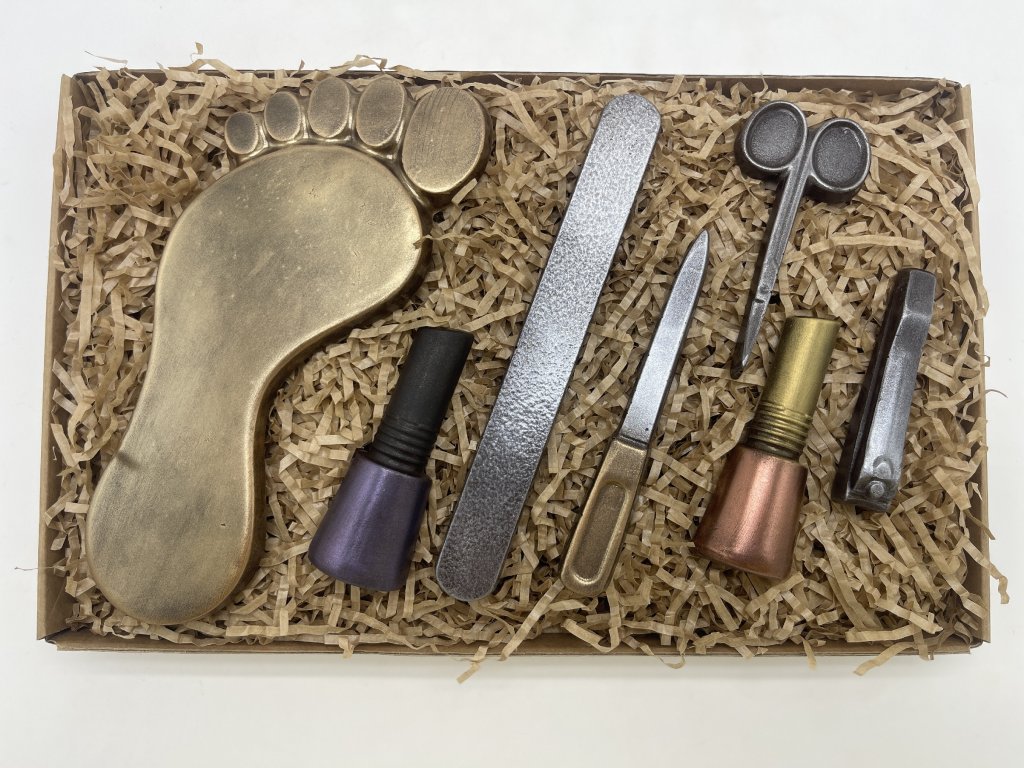 Dokonalý dárek, který rozesměje a potěší! Tahle netradiční čokoládová sada v sobě ukrývá vše, co znáte z pedikérského salónu – nůžtičky, pilníček, laky i zlaté chodidlo… ale všechno z poctivé čokolády! Kombinace jemné hořké chuti, křupavé textury a barevného lesku z ní dělá originální sladkost, která se hodí jako dárek pro kamarádku, manželku i tchýni. Ručně vyrobeno v naší čokoládovně Chocolenka – s láskou, nápadem a smyslem pro humor.