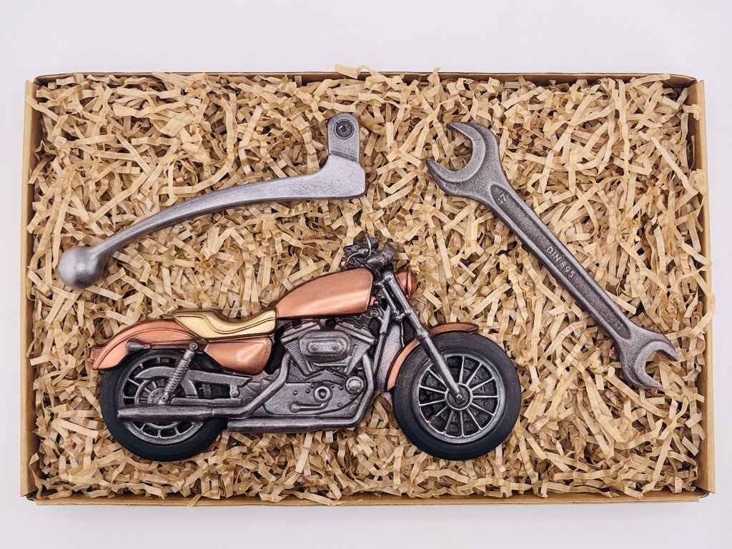 Čokoládová sada Síla jedné stopy potěší každého, kdo miluje motorky, svobodu a radost z poctivé čokolády. Motiv motocyklu, klíče a páčky vytváří originální kolekci, která zaujme na první pohled a udělá radost každému fanouškovi jedné stopy. Jemná hořká čokoláda s plnou kakaovou chutí se příjemně rozplývá na jazyku a promění každé sousto v malou odměnu. Hladká textura a pečlivě vybrané suroviny podtrhují poctivou chuť i kvalitu zpracování. Skvěle se hodí jako dárek pro motorkáře, mechanika nebo pro každého, kdo má rád stroje, volnost a originální sladké překvapení. Originální čokoládový dárek z rodinné čokoládovny Chocolenka.