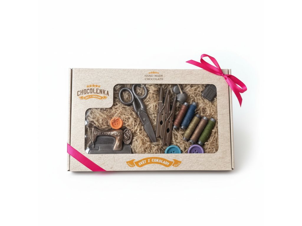 Originální sada Šití vyrobena z vynikající čokolády s obsahem min. 58 % kakaa.