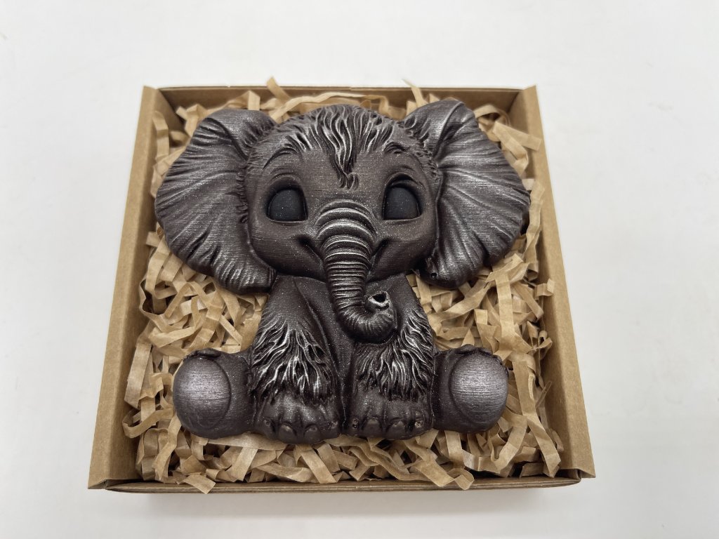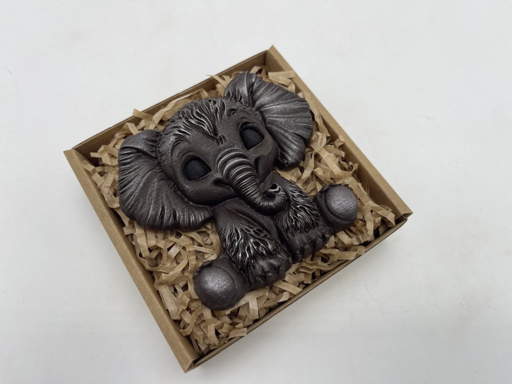 Roztomilý sloník z kvalitní 58% hořké čokolády je symbolem radosti, štěstí a ochrany. Jeho detailní zpracování a jemné metalické tóny z něj dělají malý čokoládový poklad, který potěší oko i chuťové pohárky. Tento originální čokoládový dárek je ideální pro narozeniny, výročí, jako talisman pro štěstí nebo jen tak pro radost. Darujte kousek sladkého štěstí od Chocolenky!