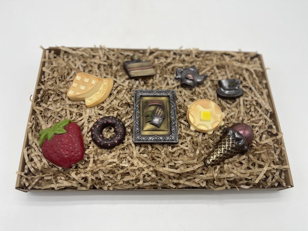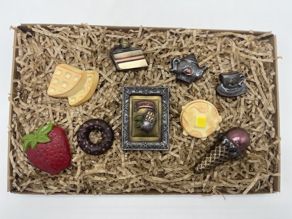 Originální čokoládová sada, která potěší každého milovníka sladkých rán! Uvnitř najdete ručně vyráběnou čokoládu ve tvaru vaflí, kávové konvice, zmrzliny i šťavnaté jahody – každá z nich je malý jedlý poklad. Dokonalá kombinace jemné hořké(min. 58 % kakaa) a bílé čokolády z ní dělá ideální dárek pro každého. Vhodné k ochutnání, ale i jako stylový jedlý dárek pro radost.