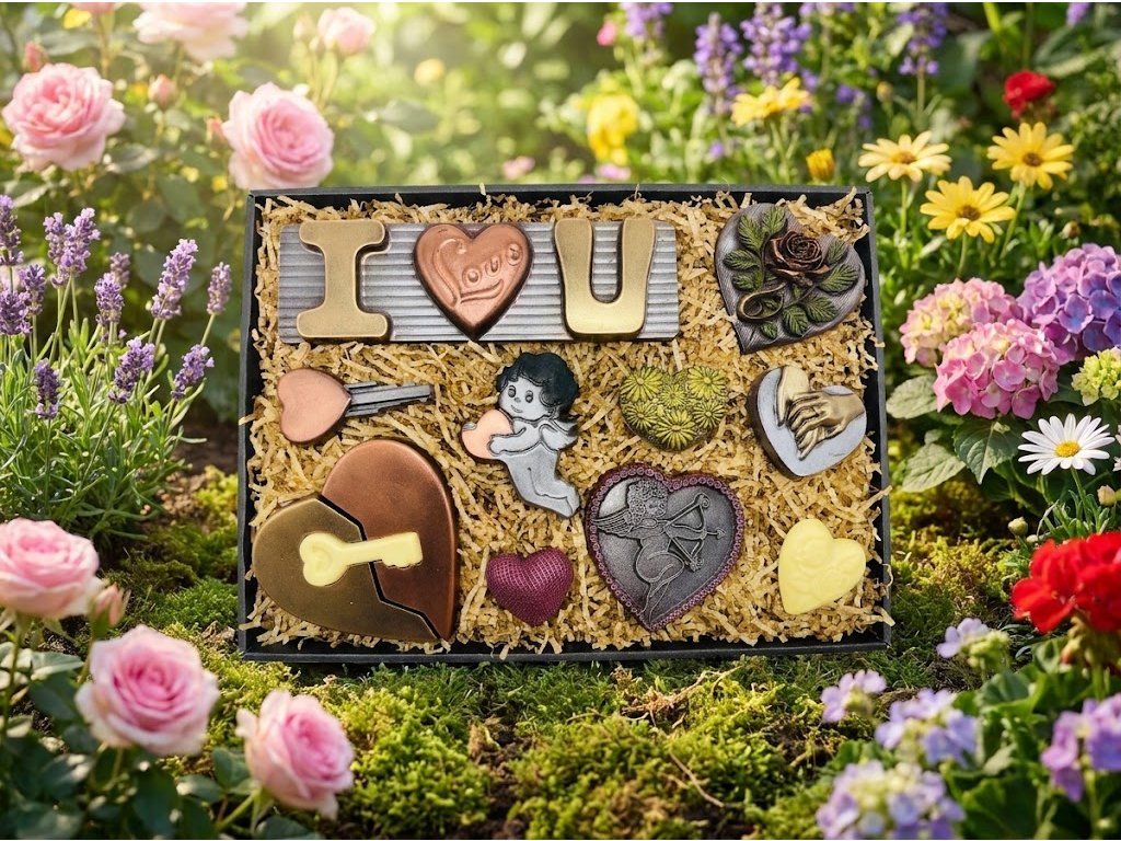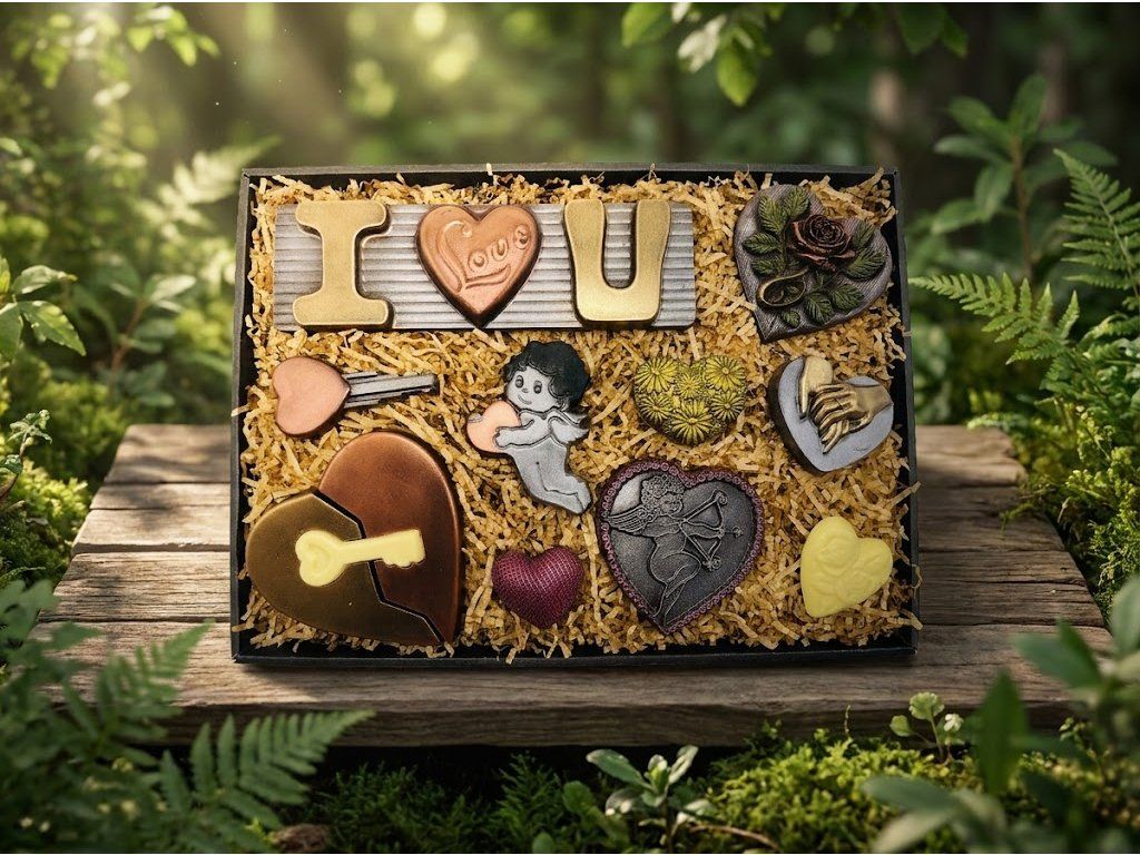 Tahle maxi čokoládová sada spojuje tmavou a bílou čokoládu do jednoho sladkého vyznání plného emocí. Jemná bílá čokoláda krásně kontrastuje s plnou chutí tmavé čokolády s vysokým podílem kakaa. Ručně vyráběné motivy srdcí a symbolů lásky potěší oko i chuťové buňky. Každý kousek vzniká v naší čokoládovně Chocolenka s důrazem na kvalitu, detail a radost z darování. Ideální jako valentýnský dárek, dárek z lásky nebo originální čokoládový dárek pro výjimečné chvíle. Elegantní balení dělá ze sady dárek, který řekne vše za vás.