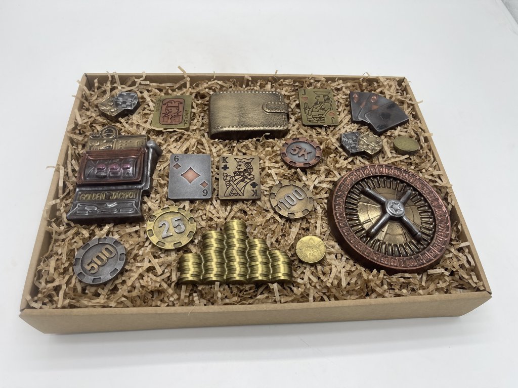 Willkommen in der Welt des Luxus und Nervenkitzels – in süßer Form! Dieses originelle Geschenkset aus der Chocolenka-Schokoladenmanufaktur begeistert alle Schokoladenliebhaber und Casino-Fans. Handgefertigte Schokoladen in Form von Roulette, Spielautomaten, Spielkarten, Jetons oder einer goldenen Brieftasche überraschen nicht nur durch ihre Optik, sondern auch durch zarten Schmelz und ausgewogenen Geschmack mit 58 % Kakaoanteil. Das perfekte Geschenk für Männer, Spieler und Erlebnisliebhaber. Eine süße Wette, die sich lohnt!