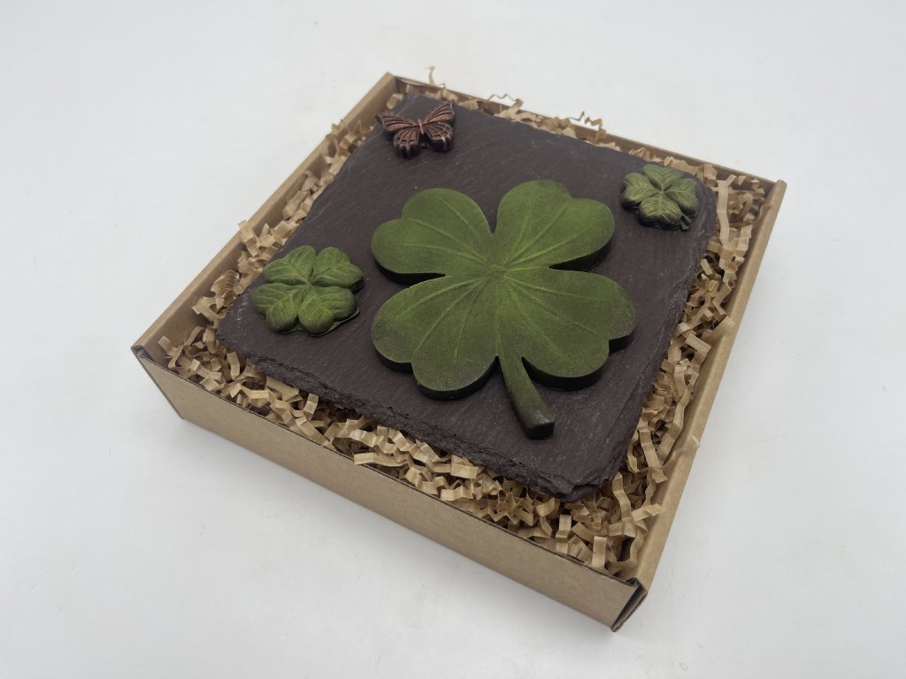 Schenken Sie Glück – Stück für Stück! Dieses elegante Schokoladenset aus der Manufaktur Chocolenka kombiniert feine Zartbitterschokolade mit handbemalten Kleeblättern und einem Schmetterling. Samtig zart im Mund, harmonisch herb-süß im Geschmack – das perfekte Geschenk zum Geburtstag, zur Hochzeit oder einfach so. Ein Glücksbringer aus Schokolade, der Herz und Gaumen verzaubert.