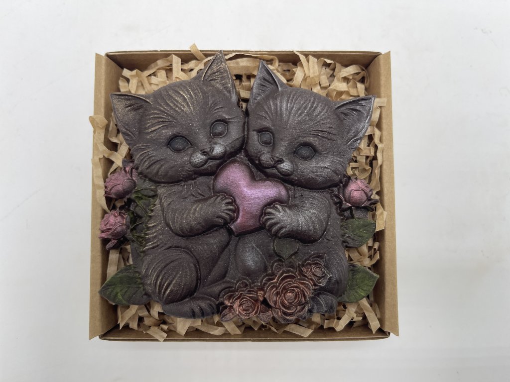 Kätzchen, die ein Herz der Liebe halten – das ist ein Schokoladengeschenk, das Herz und Gaumen erfreut. Handgefertigte Schokolade mit feinen Blüten- und Blätterdetails wirkt wie ein kleines Kunstwerk. Schon der erste Biss enthüllt den vollen Kakaogeschmack, der zart auf der Zunge schmilzt. Dieser schokoladige Glücksbringer ist das ideale Geschenk aus Liebe, zum Geburtstag oder einfach so, um einem lieben Menschen ein Lächeln zu schenken. Verschenken Sie eine süße Umarmung von Chocolenka!