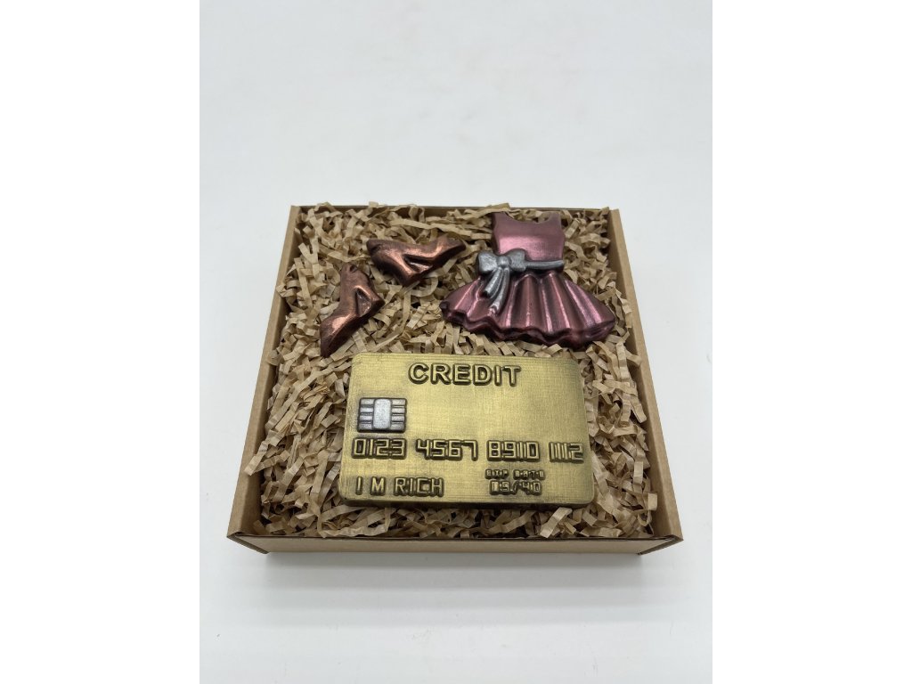 Luxuriöses Kleid, glänzende High Heels und eine goldene Kreditkarte – dieses Schokoladenset ist wie gemacht für alle, die Mode lieben und Stil auch naschen wollen. Handbemalte Stücke aus zartbitterer Schokolade (58 % Kakao) verwöhnen nicht nur den Gaumen, sondern auch die Augen. Ein originelles Geschenk für Freundinnen, Schwestern oder Kolleginnen – ein süßes Highlight mit Stil und Augenzwinkern. Denn jede verdient es, Stilkönigin zu sein – auch aus Schokolade!