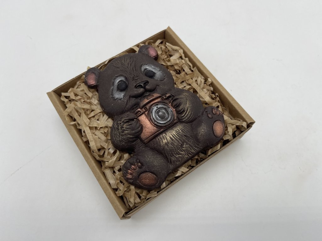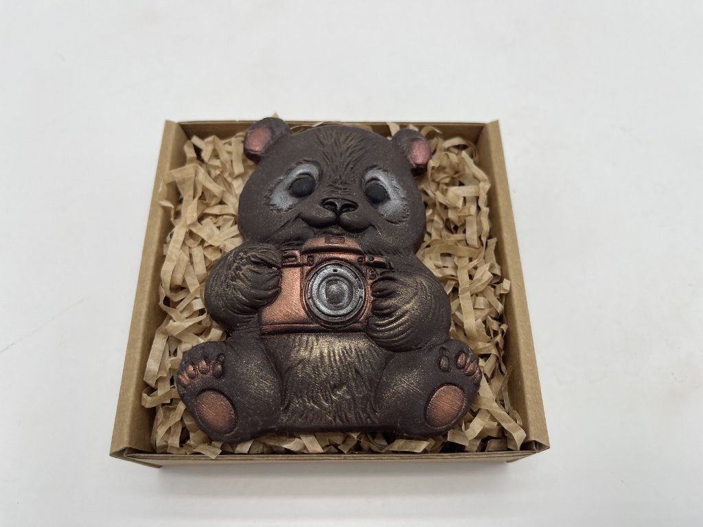 Dieses niedliche Schokoladenbärchen mit Kamera ist das perfekte Geschenk für alle, die süße Überraschungen mit originellem Design lieben. Genießen Sie feinste Zartbitterschokolade mit mindestens 58 % Kakao, die sanft auf der Zunge zergeht. Jedes Detail ist handgefertigt und verleiht dem Bärchen seinen zauberhaften Ausdruck. Diese Schokoladenfigur begeistert Kinder, Erwachsene und Fotoliebhaber gleichermaßen. Ideal als Geschenk zum Geburtstag, zur Feier oder einfach nur, um Freude zu bereiten. Mit Chocolenka schenken Sie immer nicht nur Schokolade, sondern auch ein Lächeln.