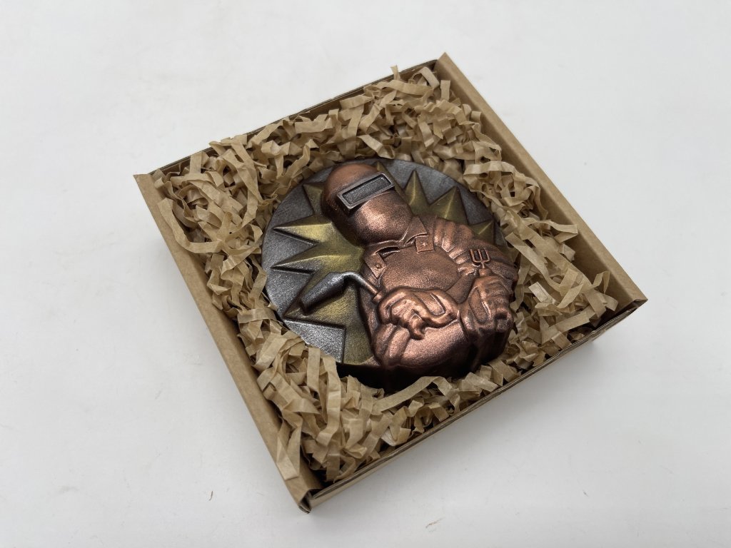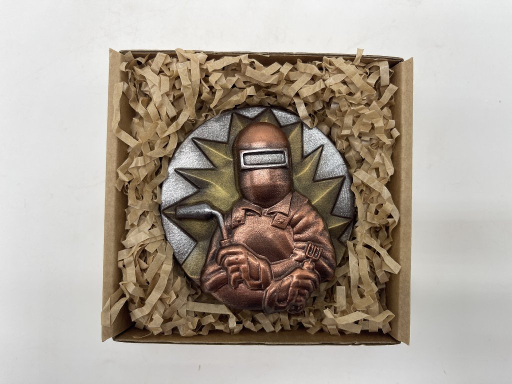 Suchen Sie ein originelles Geschenk, das garantiert ein Lächeln zaubert? Die Schokoladenfigur eines Schweißers aus unserer Manufaktur begeistert jeden Handwerker und Liebhaber ehrlicher Handarbeit. Verspielt und detailgetreu gestaltet, mit metallischen Effekten, die an echtes Werkzeug erinnern. Feinherbe Schokolade mit 58 % Kakao überrascht mit intensivem Geschmack und zartschmelzender Textur. Ideal als Geschenk für Heimwerker, Kollegen oder Papa, der das Besondere liebt. Mit Liebe hergestellt in der Schokoladenmanufaktur Chocolenka.