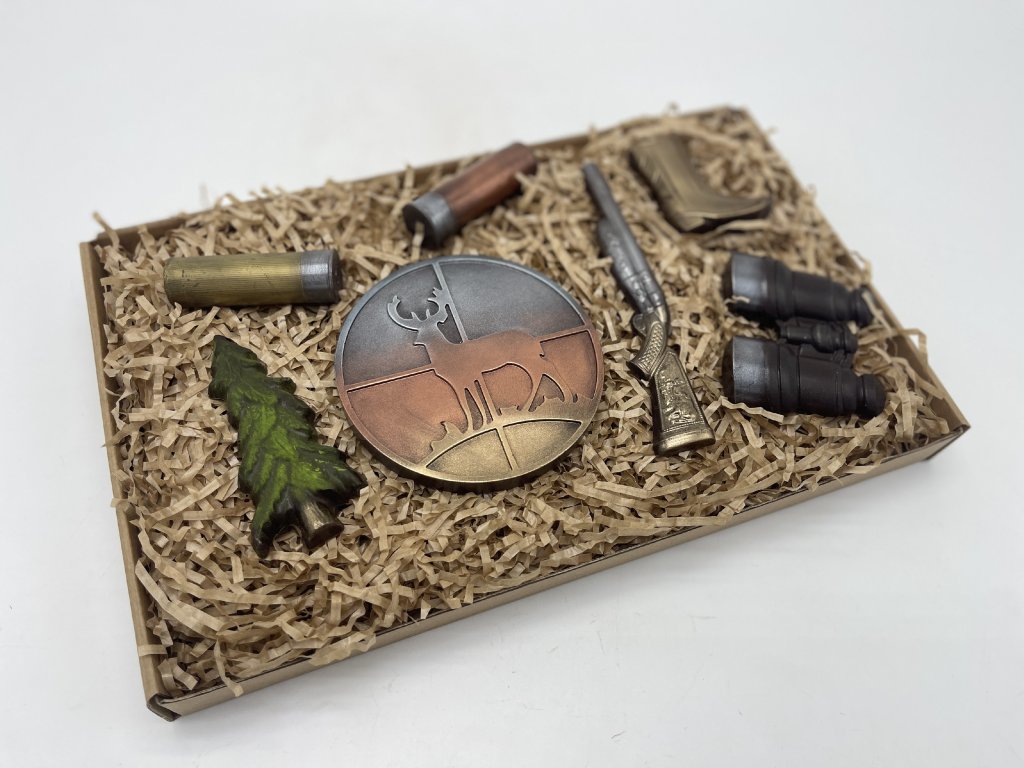 Ein perfektes Geschenk für alle, die den Duft des Waldes, Abenteuer und Naturmomente lieben. Dieses Schokoladenset erfreut jeden Jäger oder Outdoor-Fan. Jedes Stück ist ein handgegossenes Kunstwerk mit feiner Textur und intensivem Schokoladengeschmack. Schön verpackt – es fehlt nur noch die Schleife und das Lächeln des Beschenkten! Ideal als originelles Geschenk mit dem Hauch der Wildnis.