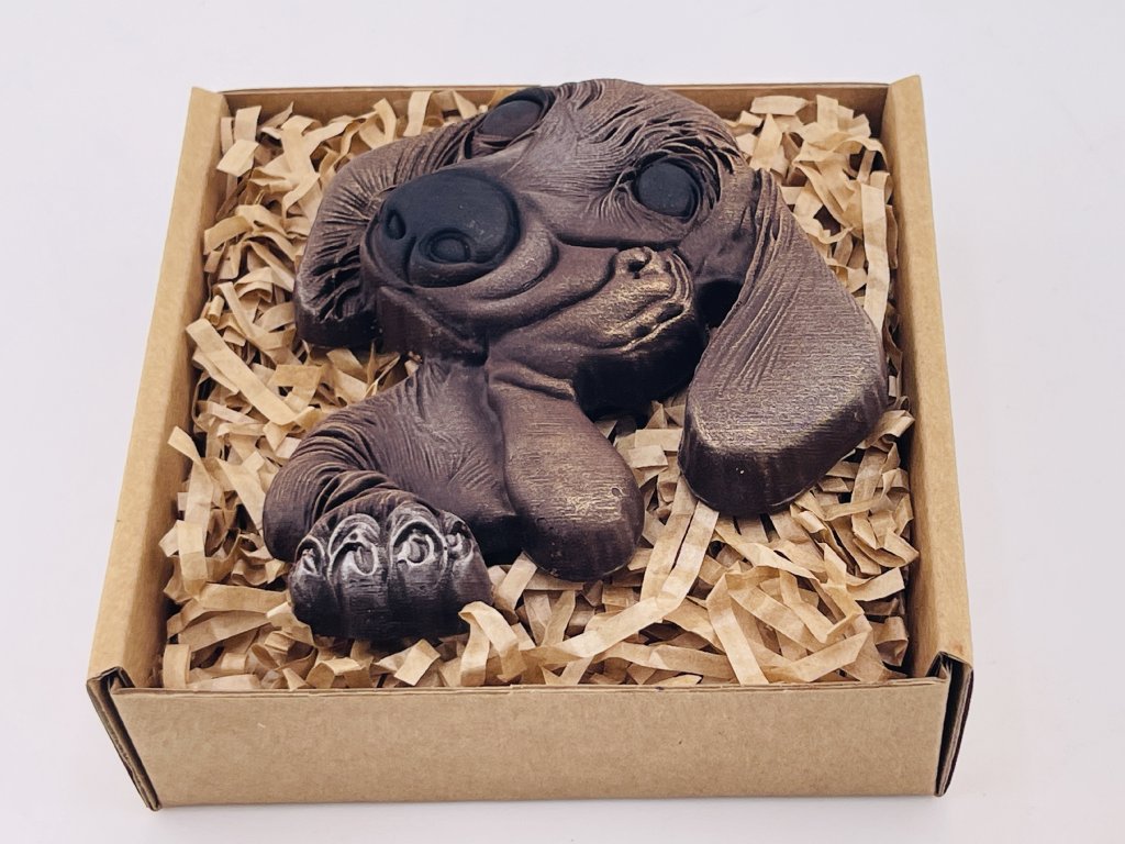 Schelmischer Blick ist ein niedliches Schokoladen-Set, das die Herzen aller Hundefreunde und Liebhaber süßer Geschenke erobert. Die feine Zartbitterschokolade mit vollem Kakaogeschmack schmilzt angenehm auf der Zunge und begeistert mit ihrer zarten Textur. Der originelle Schokoladenhund fällt sofort ins Auge und macht aus jedem Moment eine kleine süße Freude. Diese Geschenk-Schokolade ist eine wunderbare Wahl zum Geburtstag, Namenstag oder einfach als liebevolle Aufmerksamkeit für einen besonderen Menschen. Dank hochwertiger Zutaten genießen Sie ehrlichen Schokoladengeschmack und eine originelle Gestaltung zugleich. Bei Chocolenka glauben wir, dass selbst ein schelmischer Blick ein großes Lächeln zaubern kann.