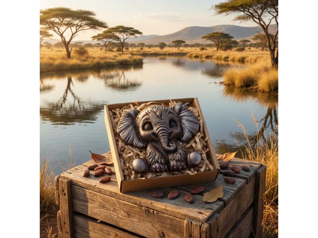 Ein niedlicher Elefant aus hochwertiger 58% Zartbitterschokolade – Symbol für Freude, Glück und Schutz. Mit seinen feinen Details und dem dezenten metallischen Glanz ist er ein kleines Schokoladenkunstwerk, das Augen und Gaumen gleichermaßen begeistert. Dieses originelle Schokoladengeschenk ist perfekt für Geburtstage, Jubiläen, als Glücksbringer oder einfach nur zum Freude schenken. Verschenken Sie ein Stück süßes Glück von Chocolenka!