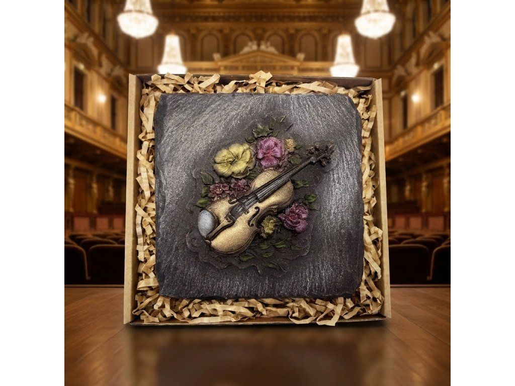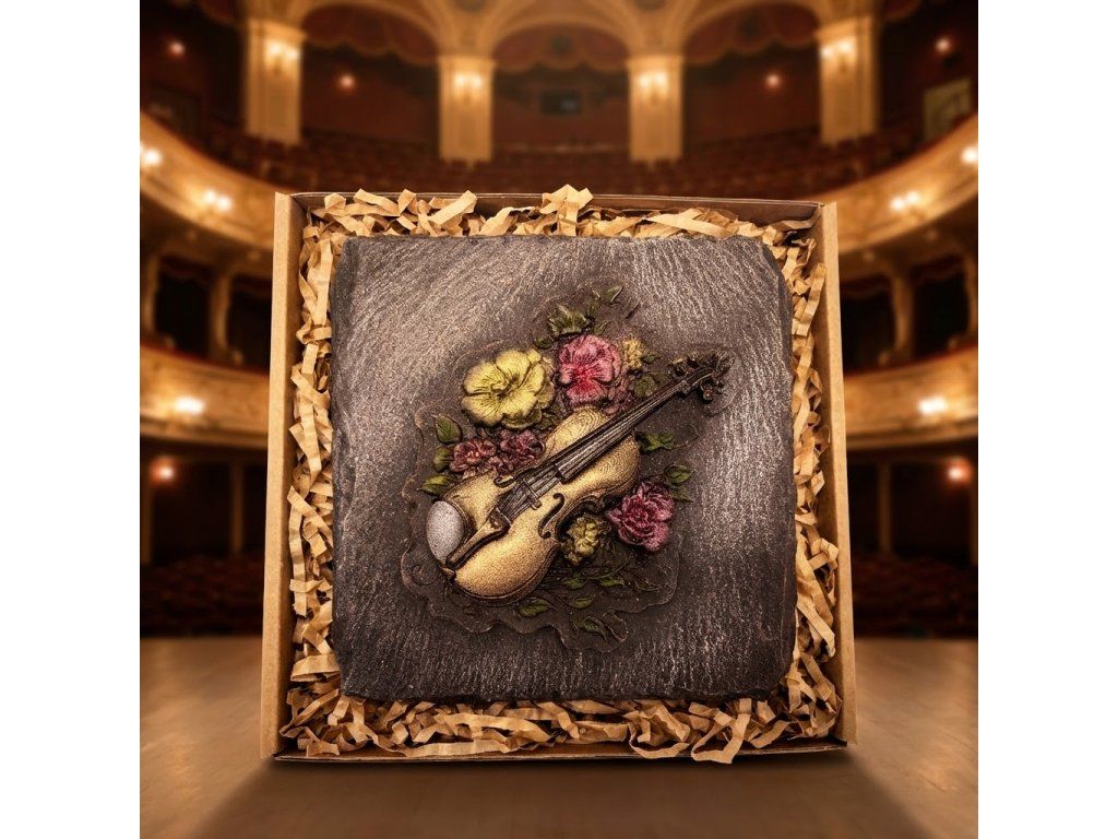 Tauchen Sie ein in eine süße Harmonie – diese handverzierte Schokolade mit Geigen- und Blumenmotiv ist wie eine Melodie für alle Sinne. Feinherbe Schokolade mit 58 % Kakaoanteil begeistert Liebhaber intensiver Aromen, während die filigrane Blütendekoration jeden Bissen zum Kunstwerk macht. Ideal als originelles Geschenk für Musiker, Romantiker und alle, die Schokolade mit Geschichte lieben.
