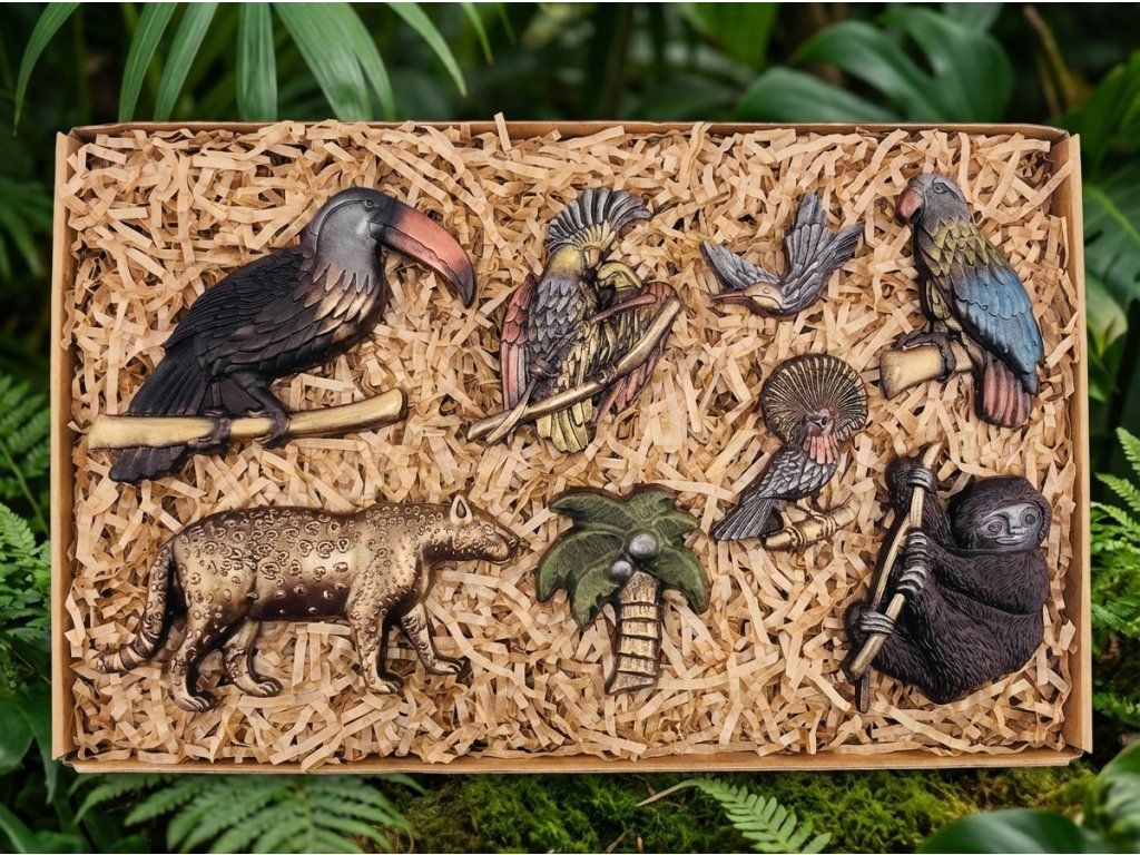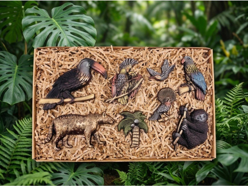 Begeben Sie sich in ein tropisches Paradies voller Geschmack und Emotionen! Unser Schokoladenset in Form exotischer Tiere und Vögel aus dem Amazonas ist das perfekte Geschenk für Naturliebhaber und Feinschmecker. Jedes Stück ist handbemalt und aus Zartbitterschokolade mit mindestens 58 % Kakao gefertigt – ein intensiver Geschmack, der alle Sinne verwöhnt. Die Textur ist glatt, mit einem feinen Knacken beim Brechen. Ideal als außergewöhnliches Geschenk oder süße Überraschung. Schenken Sie ein Stück Abenteuer mit Schokolade von Chocolenka!