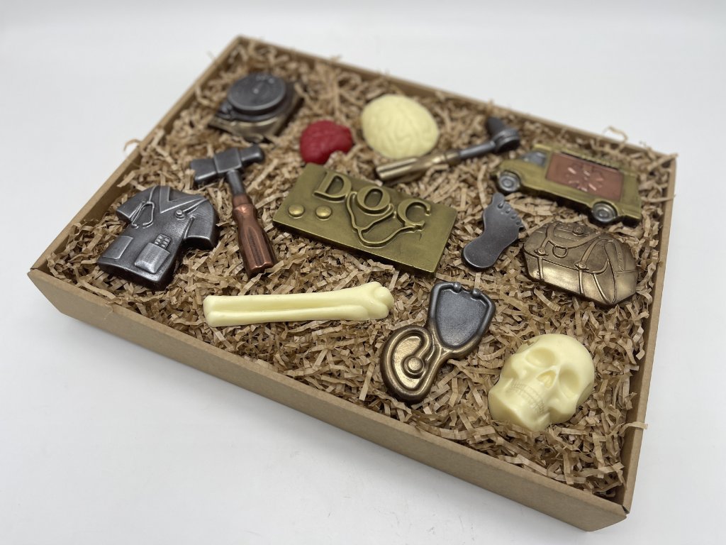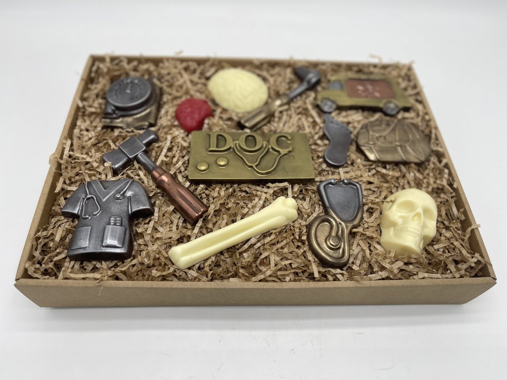 Süße Notfallhilfe für jeden Arzt, Medizinstudenten oder Gesundheitsprofi! Unser Schokoladenset „Ärztlicher Notfall“ enthält sorgfältig handgegossene Schokoladen in Form medizinischer Symbole – Schädel, Gehirn, Stethoskop, Herz oder Krankenwagen. Ein witziges Geschenk, das Freude bringt und ein Lächeln auf die Lippen zaubert – und dazu ein Genuss: Die feine Textur und der vollmundige Kakaogeschmack zergehen auf der Zunge. Perfekt als originelles Geschenk zur Promotion, zum Geburtstag oder einfach als Dankeschön für gute Pflege.