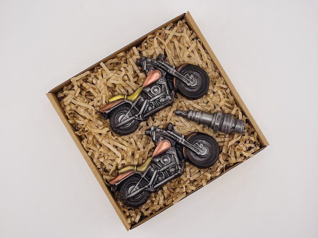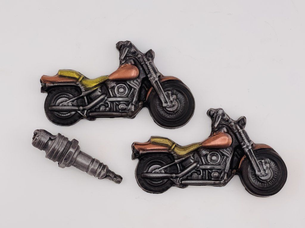 Original Harley Motorräder mit Ersatzzündkerze für den Motor aus ausgezeichneter Schokolade mit einem Inhalt von min. 58 % Kakao.