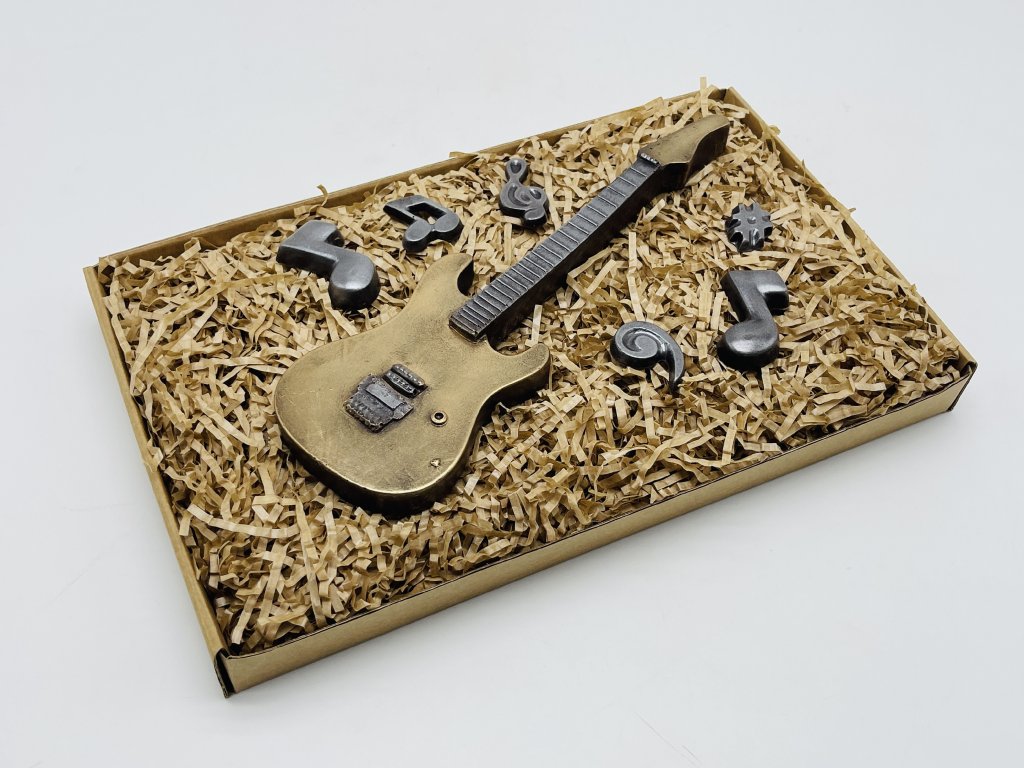 Das Original-Gitarristen-Set aus exzellenter Schokolade mit mindestens 58% Kakaoanteil.