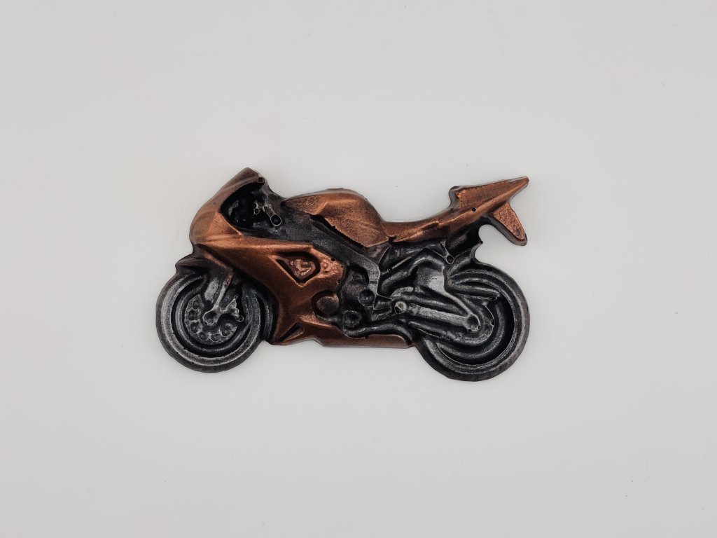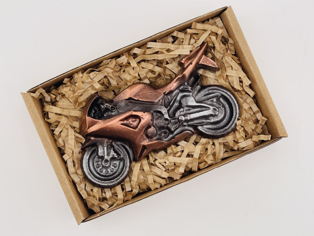 Original-Motorrad aus exzellenter Schokolade mit einem Kakaoanteil von mindestens 58%.