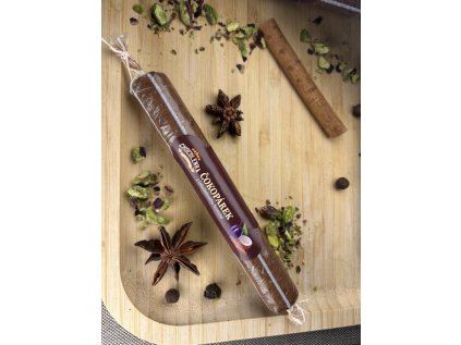 Die berühmte Jägerwurst in süßer Schokoladenform! Unsere Schokoladen-Jägerwurst ist dichter, fester und reichlich gefüllt mit Pistazien, Haselnüssen, Mandeln oder Cashews. Dank origineller Kombinationen entsteht ein einzigartiger Geschmack, der Liebhaber kräftiger Süßigkeiten begeistert. Ideal als Geschenk für alle, die gerne Außergewöhnliches probieren.