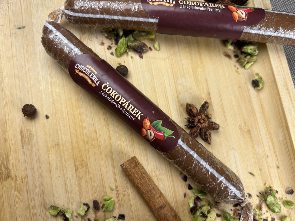 Schokoladenwurst – Haselnuss, Mandel & Chili (Vollmilchschokolade)