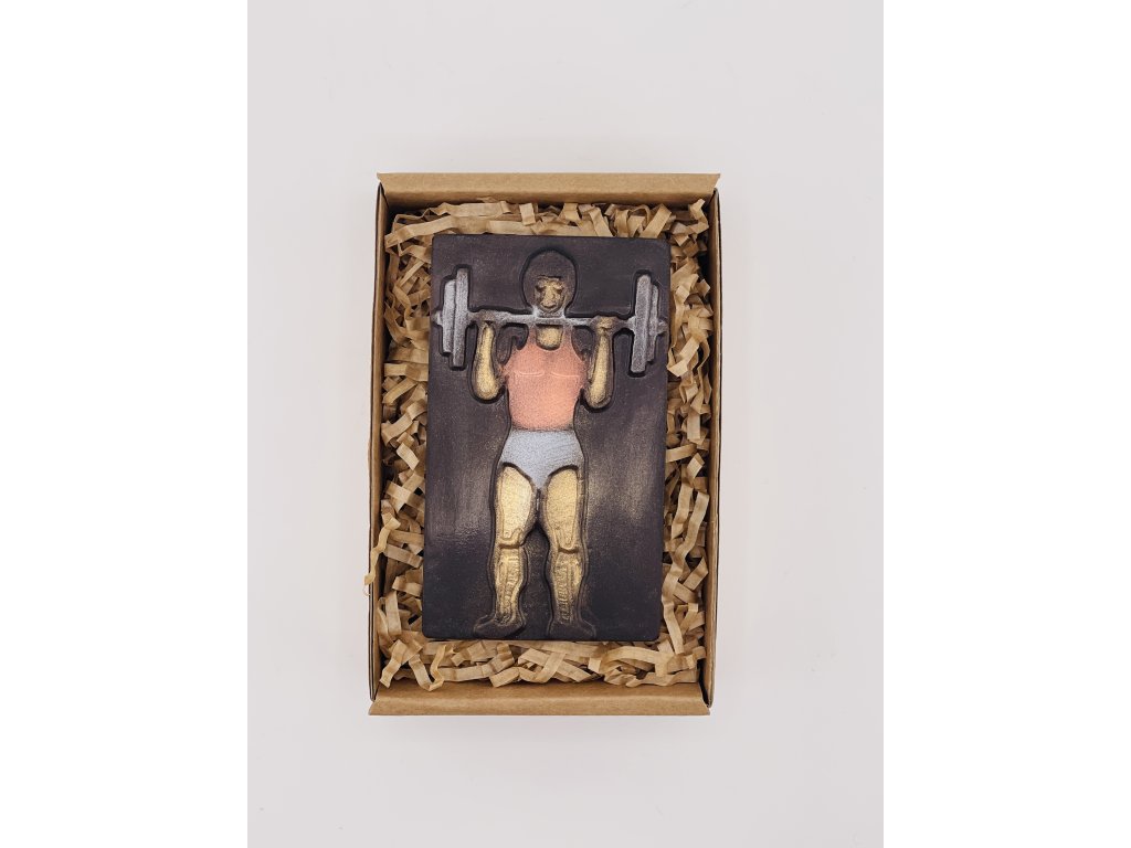 Der originale Weightlifter aus exzellenter Schokolade mit mindestens 58% Kakaoanteil.