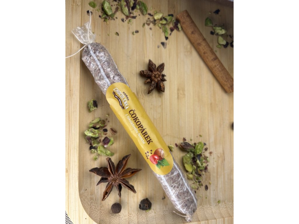 Our Chocolate Sausage Small is a handmade delicacy crafted in the shape of a traditional sausage. This flavour combines fine white chocolate with freeze-dried sour cherries, crunchy Piemonte hazelnuts and a touch of pepper. The result is a refined balance of sweetness, fruity acidity and subtle spice — perfect as a gourmet gift or a dessert pairing with wine.