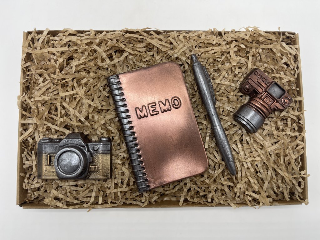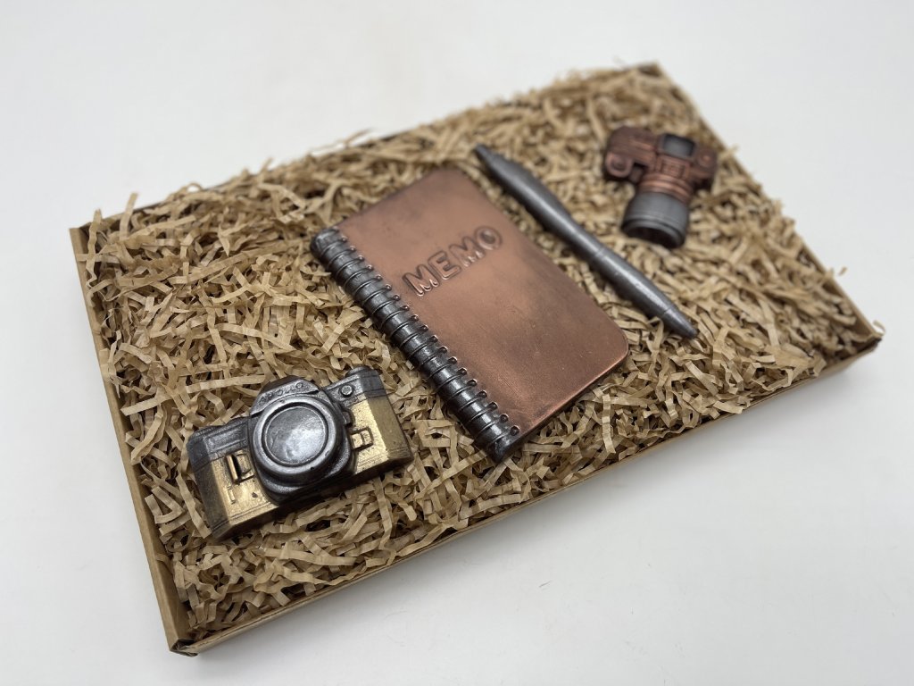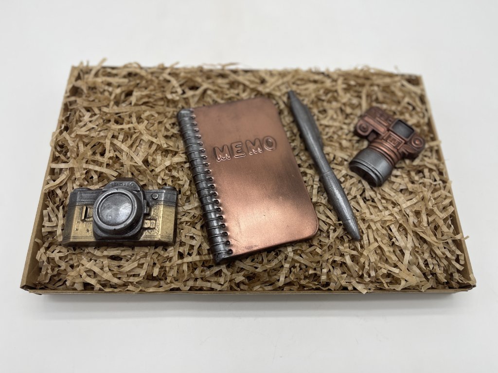The "For Journalists" chocolate set is the perfect gift for those who appreciate creativity and high-quality taste experiences. This set includes chocolate pieces shaped like a notebook, pen, and cameras – an ideal combination for any journalist who loves writing, photographing, and documenting.