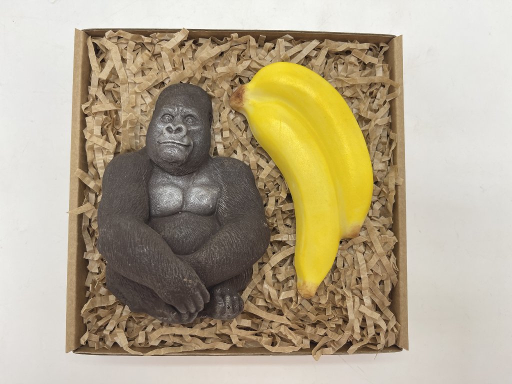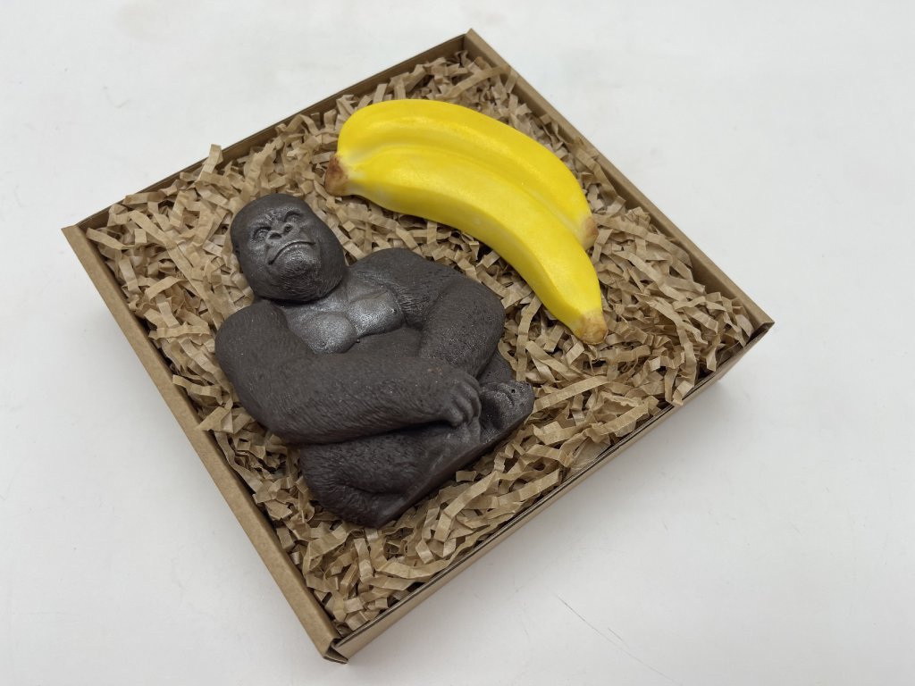 When a gorilla falls in love with a banana, this fun and delicious set is born! A handcrafted dark chocolate gorilla (min. 58% cocoa) with a smooth bitter taste, paired with two sweet and vibrant yellow bananas – it’s a treat that makes you smile at first glance and brings joy with every bite. A perfect gift for anyone who loves chocolate, humor, and a bit of adventure. Great for birthdays or anytime you want to make someone smile.