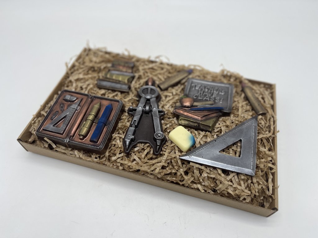 An original gift that will delight any teacher! This handcrafted chocolate set shaped like school supplies and books is a tribute to all those who lead the classroom with confidence. Enjoy smooth dark chocolate with at least 58% cocoa that melts in your mouth. Each piece is a small work of edible art – from compass to crayon. Perfect as a thank-you for the whole school year, for Teacher’s Day or just because – teachers deserve a sweet appreciation!