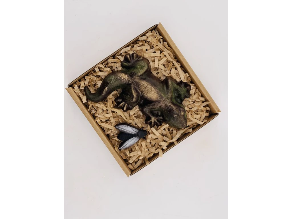 The Lizard in Action chocolate set delights anyone who loves exotic animals, playful motifs, and original chocolate gifts. The striking design of a lizard with its little prey feels lively and imaginative, making this set eye-catching at first glance. The delicate dark chocolate with its rich cocoa flavour melts pleasantly on the tongue and turns every piece into a small sweet adventure. Its smooth texture and carefully selected ingredients highlight the intense flavour and the joy of every bite. It is perfect as a gift for lovers of nature, terrariums, and unusual chocolate designs. An original sweet surprise from the family chocolate workshop Chocolenka.