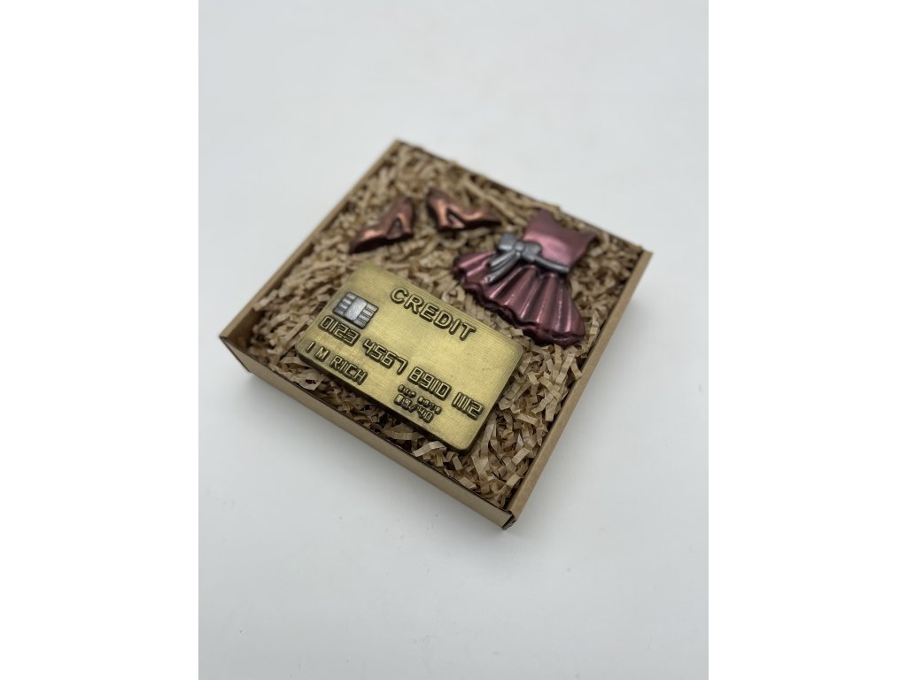 A glamorous dress, sparkling heels, and a golden credit card – this chocolate set is made for every woman who loves fashion and believes style should be sweet. Hand-painted pieces made from smooth dark chocolate (58% cocoa) please the eyes and melt on the tongue. A perfect gift for your friend, sister, or colleague – fun, elegant and full of personality. Because being the Queen of Style is a treat in itself.