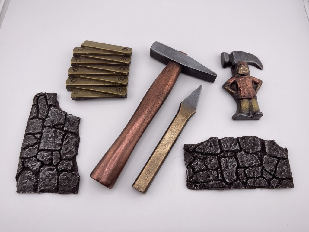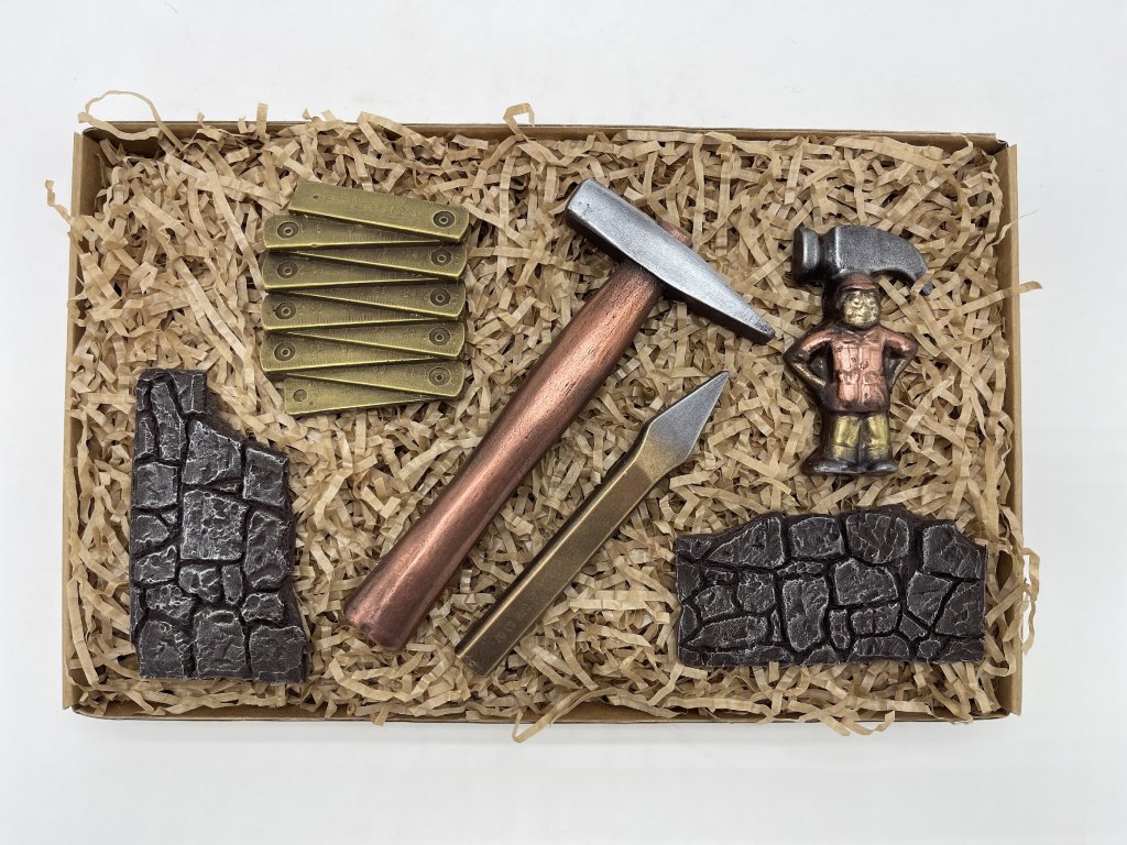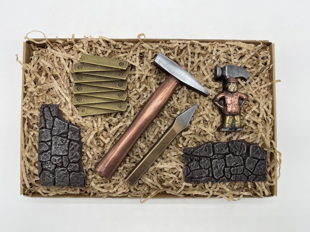 This original chocolate set, inspired by the stonemason’s craft, will delight both masters of stone and their admirers. Inside you’ll find chocolate tools, a stonemason figurine, and realistic stone walls – all made from delicious dark chocolate with 58% cocoa. Hand-painted metallic details turn each piece into a little edible masterpiece. The chocolate melts smoothly on the tongue, leaving a rich flavor as bold as the stonemasons’ work itself. A wonderful gift idea for craftsmen, DIY lovers, and chocolate enthusiasts who appreciate an extraordinary surprise.