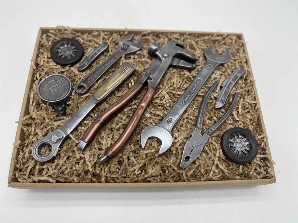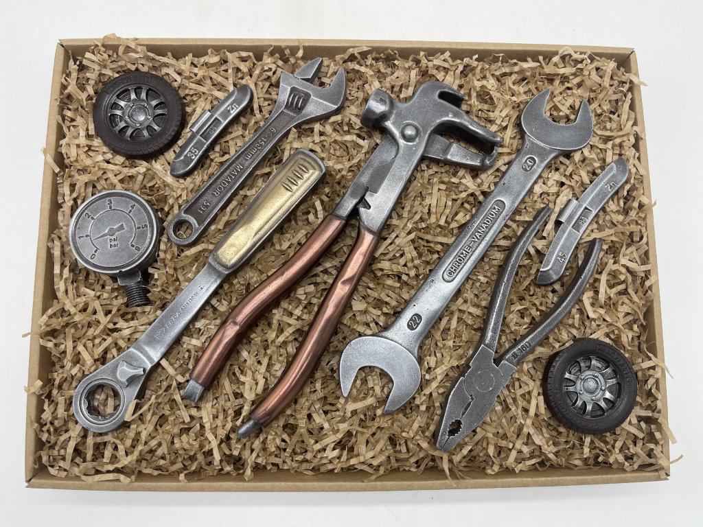 For all handy folks with a sweet tooth! This original chocolate tool set looks just like the real thing – but it's made of rich dark chocolate. Each piece is crafted with incredible texture and detail, from hammer to pipe wrench. A brilliant gift idea for men, car mechanics, or chocolate lovers. Handmade with love by Chocolenka – where fun meets flavour.