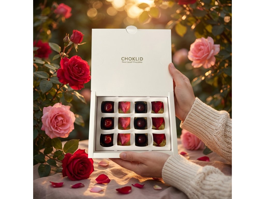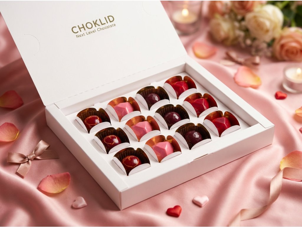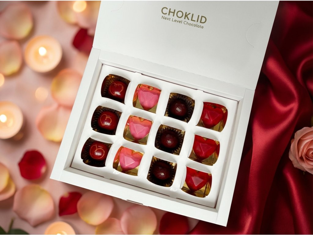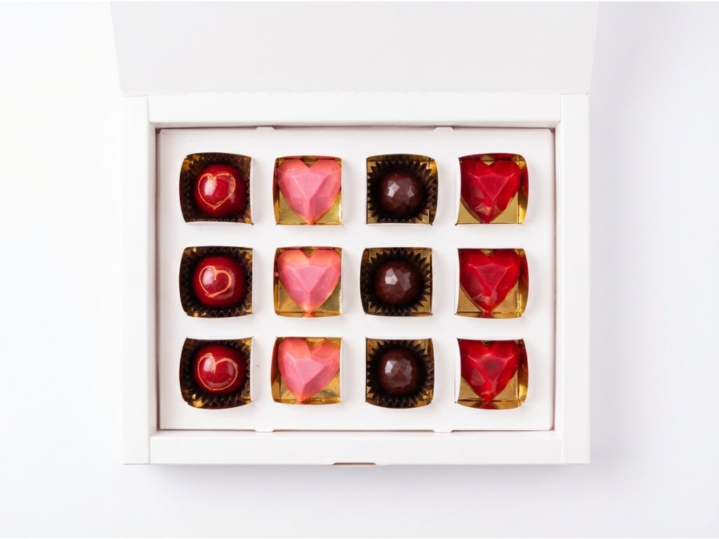 Valentýnská dárková krabička pralinek - 12 ks