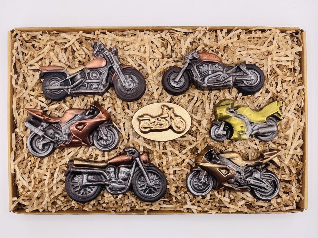 Go on an unforgettable journey on chocolate motorbikes. The journey will not be very long, but it will be very sweet. A great gift of delicious chocolate for bikers.
