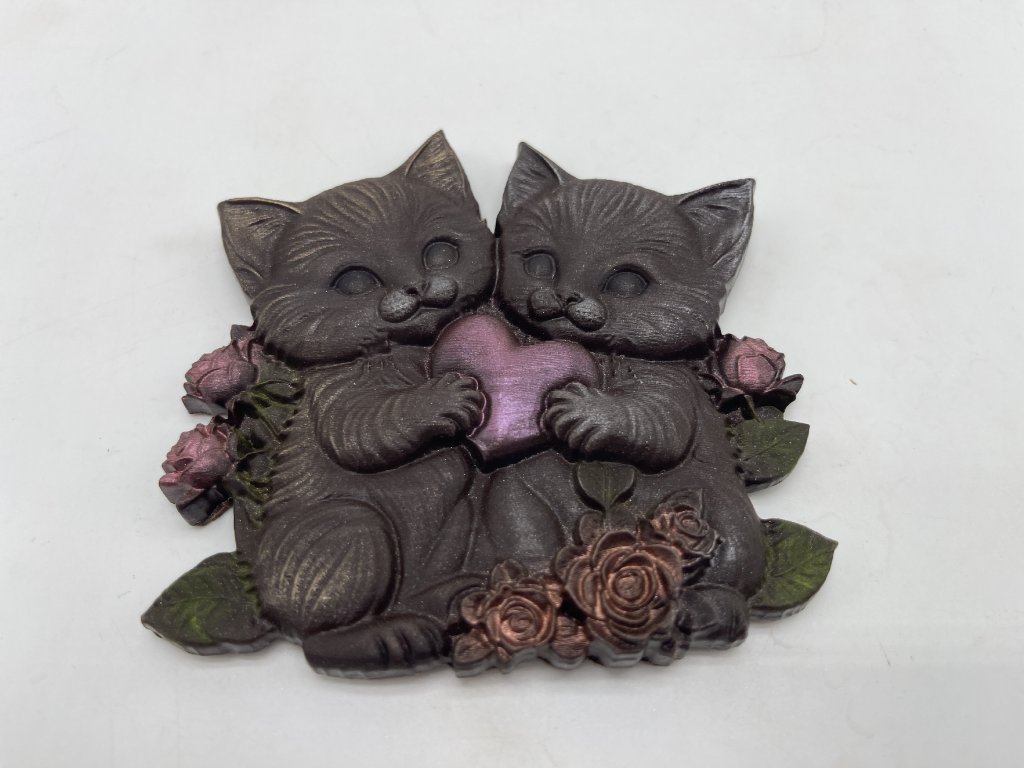 Mačiatka, ktoré držia srdiečko z lásky – to je čokoládový darček, ktorý poteší srdce aj chuťové poháriky. Ručne vyrobená čokoláda s jemnými detailmi kvetov a lístkov pôsobí ako malý umelecký kúsok. Už prvé sústo odhalí plnú kakaovú chuť, ktorá sa krásne rozplýva na jazyku. Tento čokoládový talizman radosti je ideálny ako darček z lásky, na narodeniny alebo len tak, pre úsmev blízkeho človeka. Darujte sladké objatie od Chocolenky!