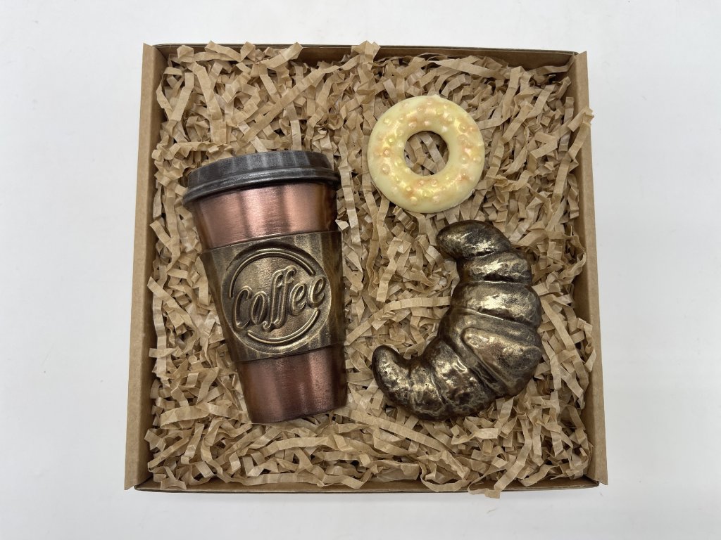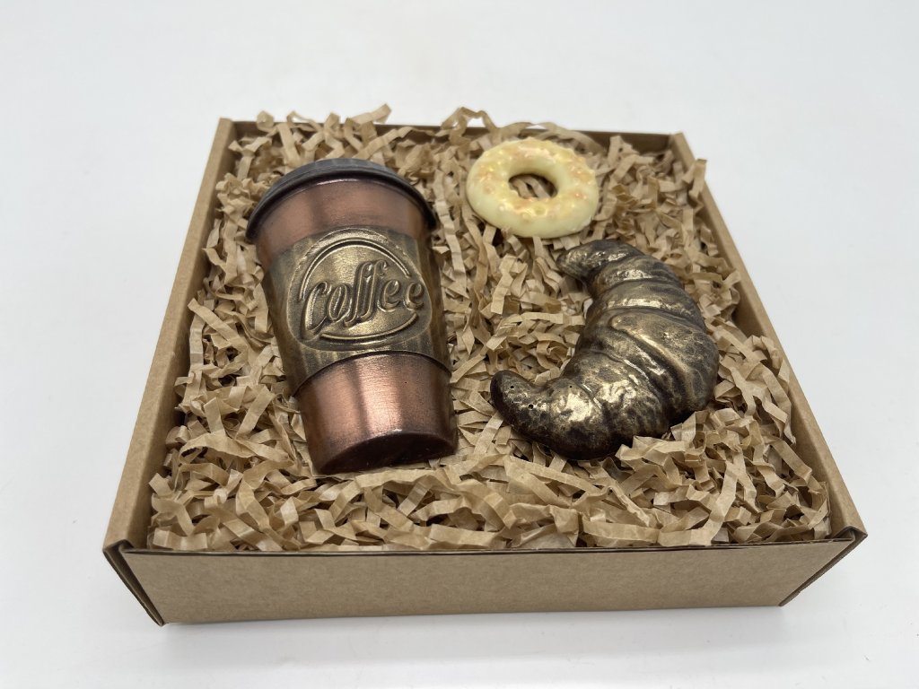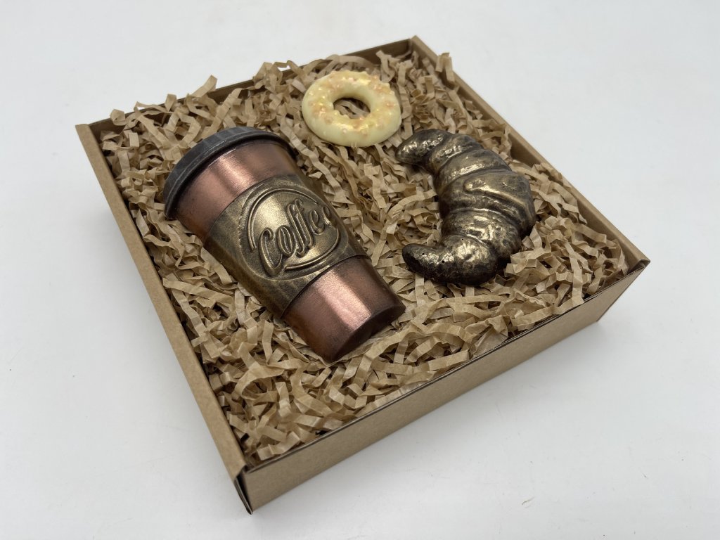 Perfektný darček pre každého, kto miluje sladké rána! Táto originálna čokoládová sada obsahuje kávový pohárik, nadýchaný croissant a rozkošný donut – všetko ručne vyrobené z poctivej horkej čokolády s 58 % kakaa. Každý kus je detailne spracovaný a poteší oko aj chuťové poháriky. Ideálne ako vtipný darček alebo sladká chvíľka pre seba. Bez lepku, bez laktózy, plná radosti.
