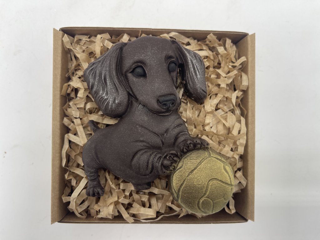 Neodolateľný čokoládový spoločník z dielne Chocolenka, ktorý rozveselí každého milovníka sladkostí a zvierat. Detailne prepracovaný jazvečík z kvalitnej horkej čokolády sa hrá s loptou a čaká na svojho nového pánička! Ideálny ako darček pre deti, milovníkov psíkov alebo ako originálna pozornosť z lásky. Urobte radosť hravou čokoládou, ktorá poteší nielen chuťou, ale aj srdcom.