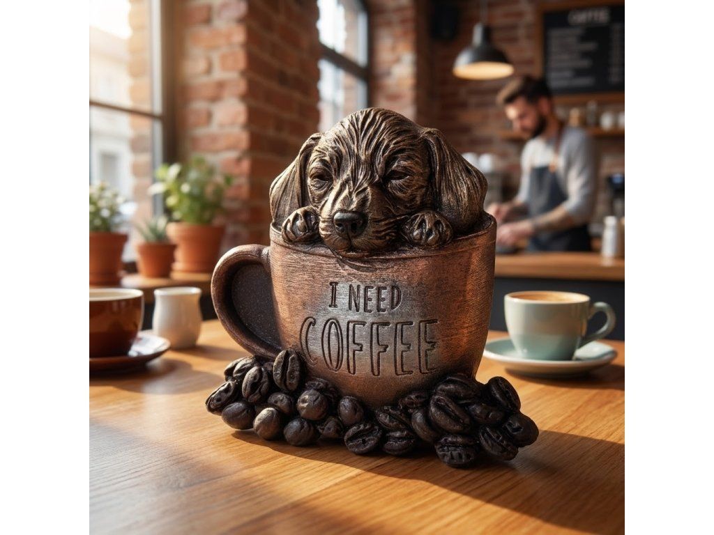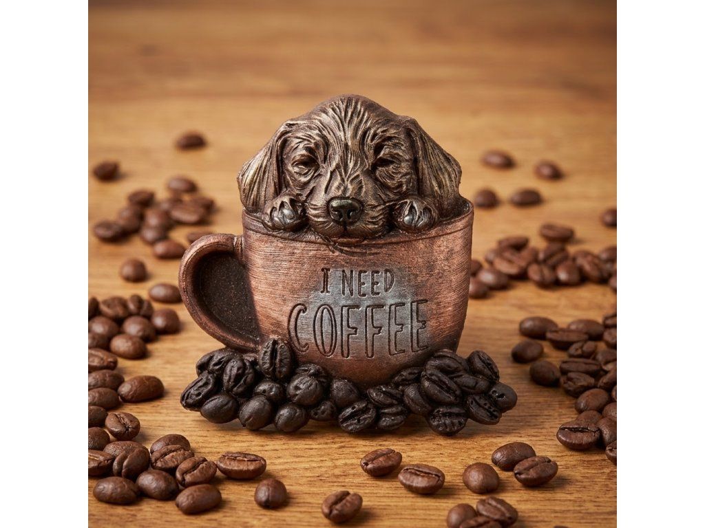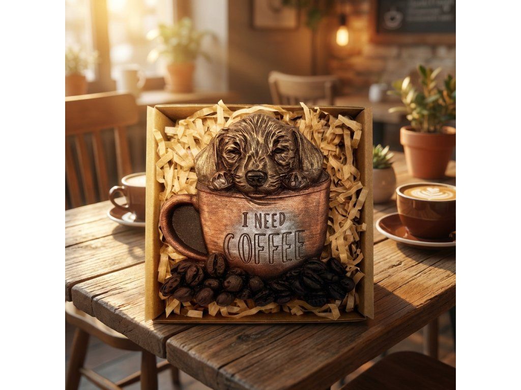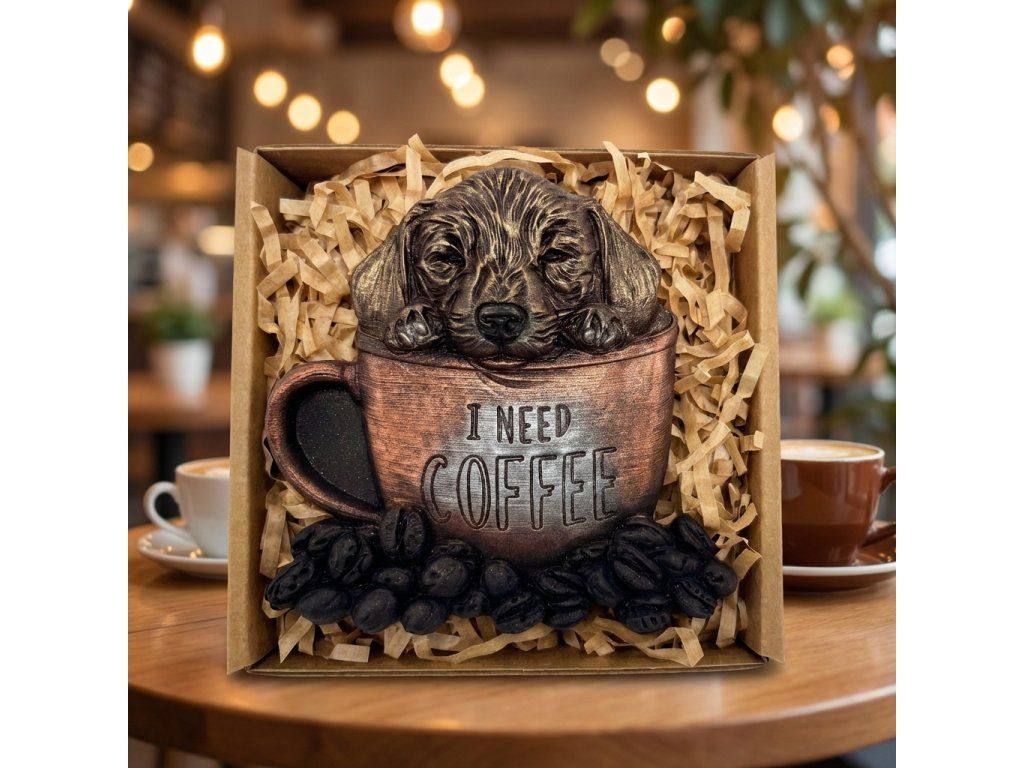 Roztomilý psík vykúkajúci z hrnčeka s nápisom I need coffee poteší každého, kto miluje čokoládu aj dobrú náladu. Táto originálna čokoládová sada spája intenzívnu chuť 58% horkej čokolády s jemnou textúrou, ktorá sa rozplýva na jazyku. Ručne maľované detaily od ušiek až po kávové zrnká pôsobia tak realisticky, že vám vyčaria úsmev na tvári. Skvelý tip na darček pre všetkých milovníkov kávy, psíkov aj netradičných sladkostí. Doprajte radosť v čokoládovej podobe – Psí kofeín nikdy nesklame!