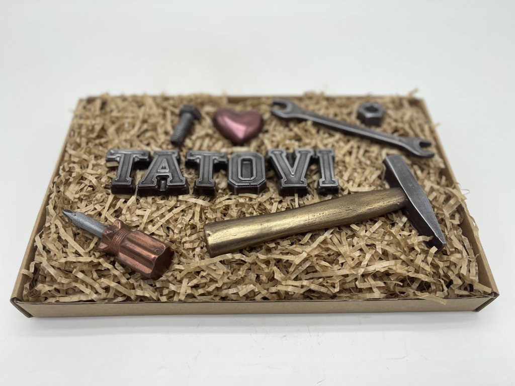 Tento sladký vercajg roztopí aj najväčšieho drsňáka! Originálna sada náradia z čokolády poteší každého otca, ktorý si zaslúži niečo výnimočné. Realistické čoko-náradie doplnené o srdce a nápis „OTCOVI“ je dokonalým darčekom na Deň otcov, narodeniny alebo len tak pre radosť. Chuťovo jemná horká čokoláda prekvapí nielen vzhľadom, ale aj kvalitou. Ručne vyrábané s láskou v čokoládovni Chocolenka.
