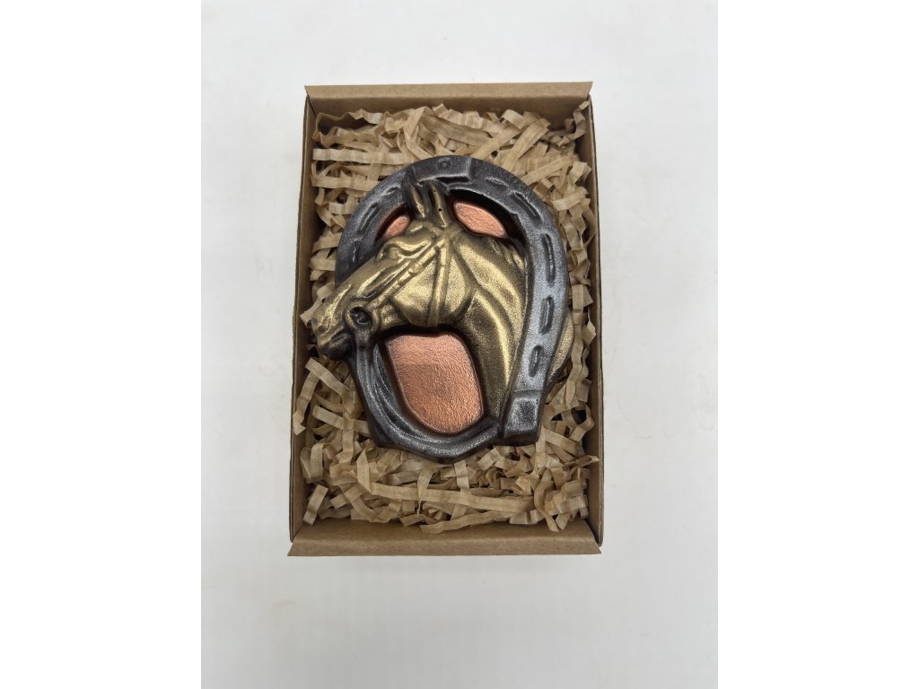 Originální podkova s koněm vyrobena z vynikající čokolády s obsahem min. 58 % kakaa.