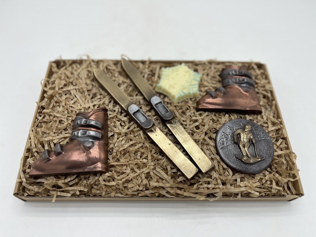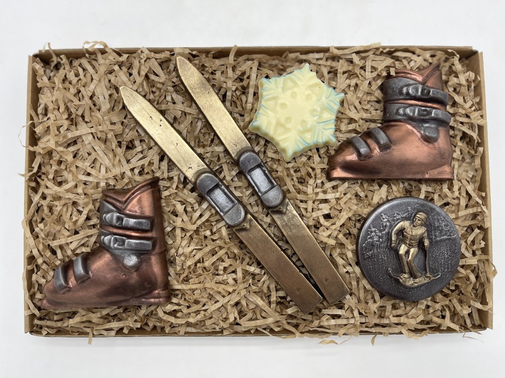 Zabalte zimní zážitky do čokolády! Sada je sladký dárek pro všechny milovníky hor, sněhu a lyžování. Najdete v ní ručně vyráběné lyžáky, lyže, sněhovou vločku – vše z poctivé čokolády, která chutná stejně skvěle, jak vypadá. Kombinace jemně hořké chuti, krémové textury a zábavného provedení udělá radost dětem i dospělým. Skvělý dárek pro sportovce, tatínky, instruktory i zimní romantiky. V originální dárkové krabičce od čokoládovny Chocolenka.