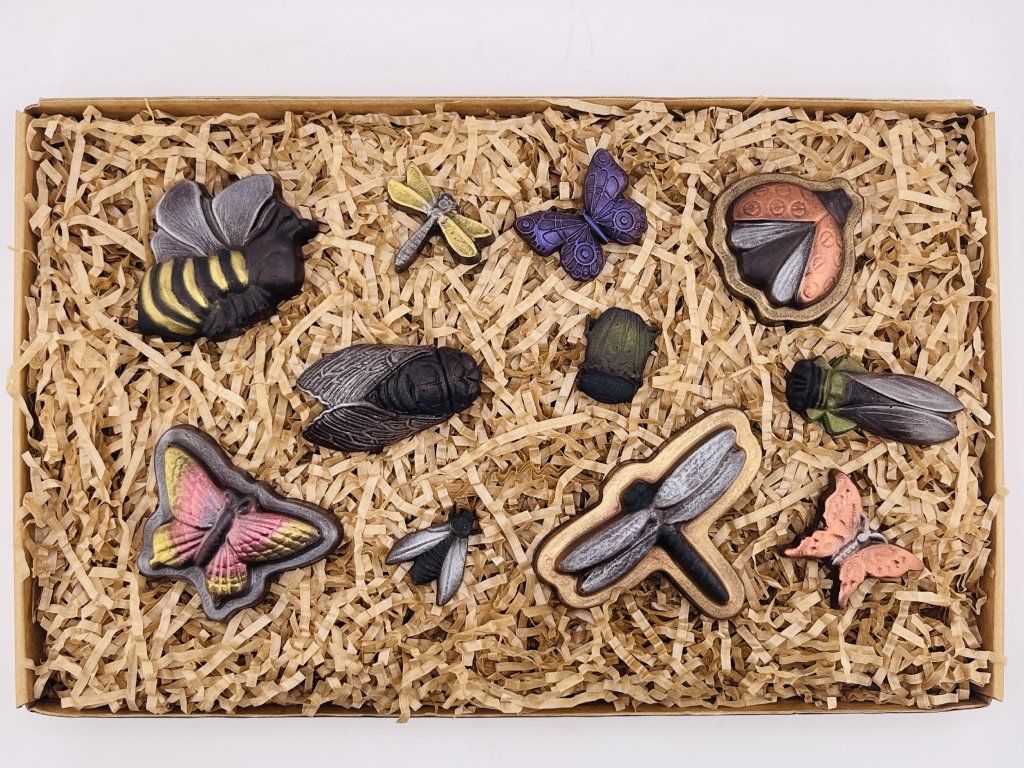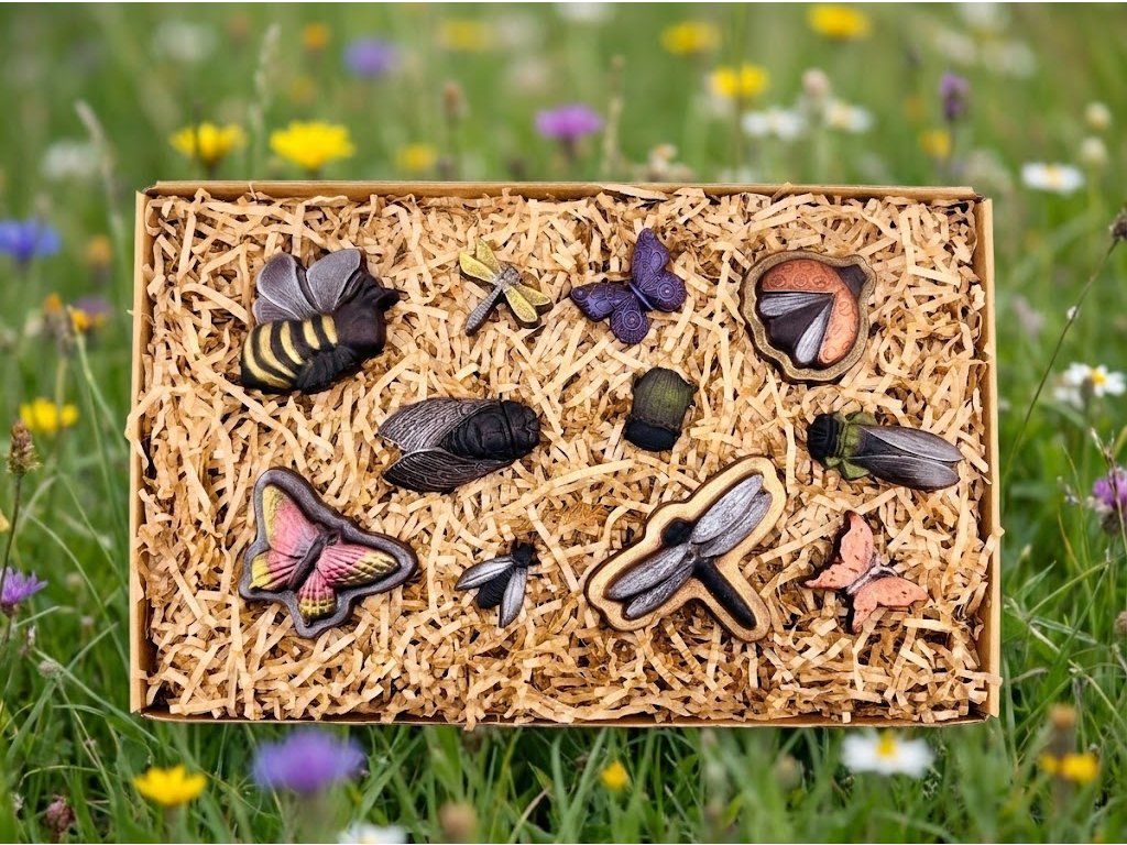 Originální sada ze světa hmyzu vyrobena z vynikající čokolády s obsahem min. 58 % kakaa.