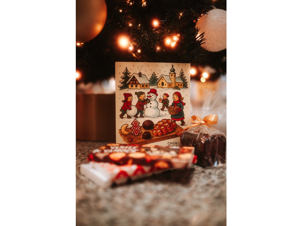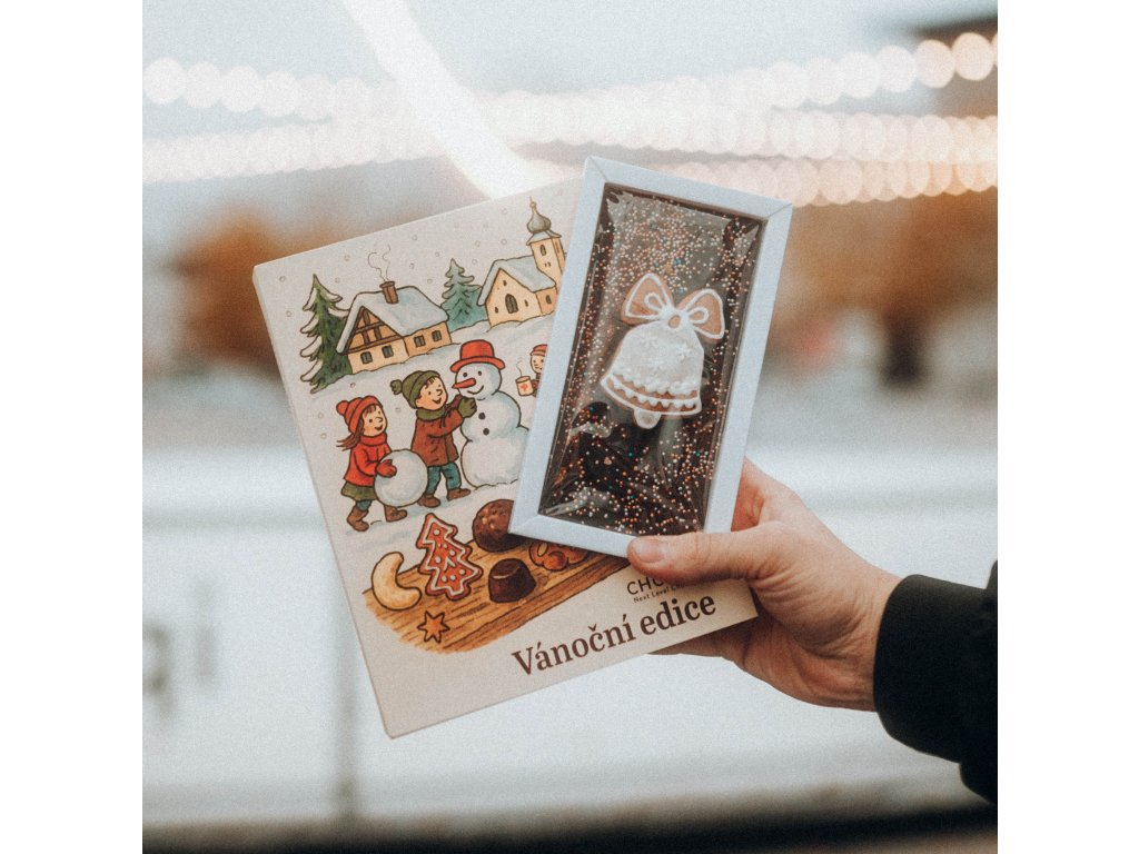 1× Hořká tabulková čokoláda s perníčkem – ručně zdobená čokoláda s perníčkem a vánočními posypy.