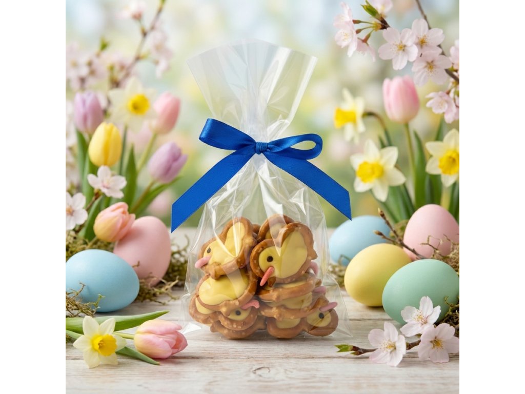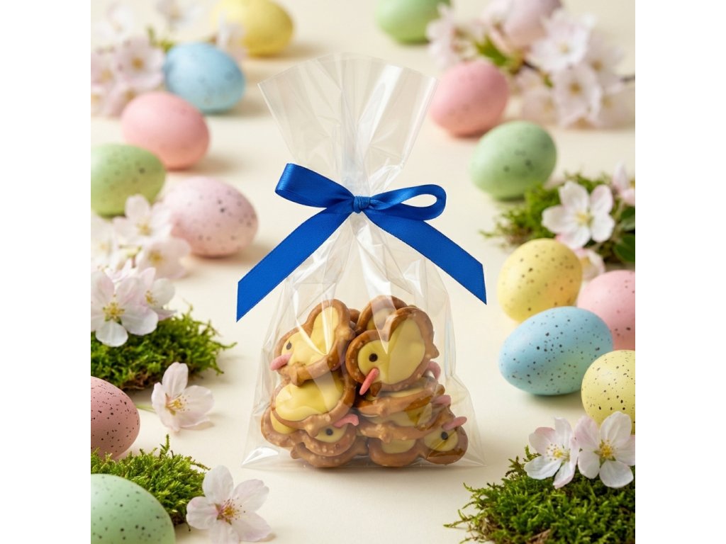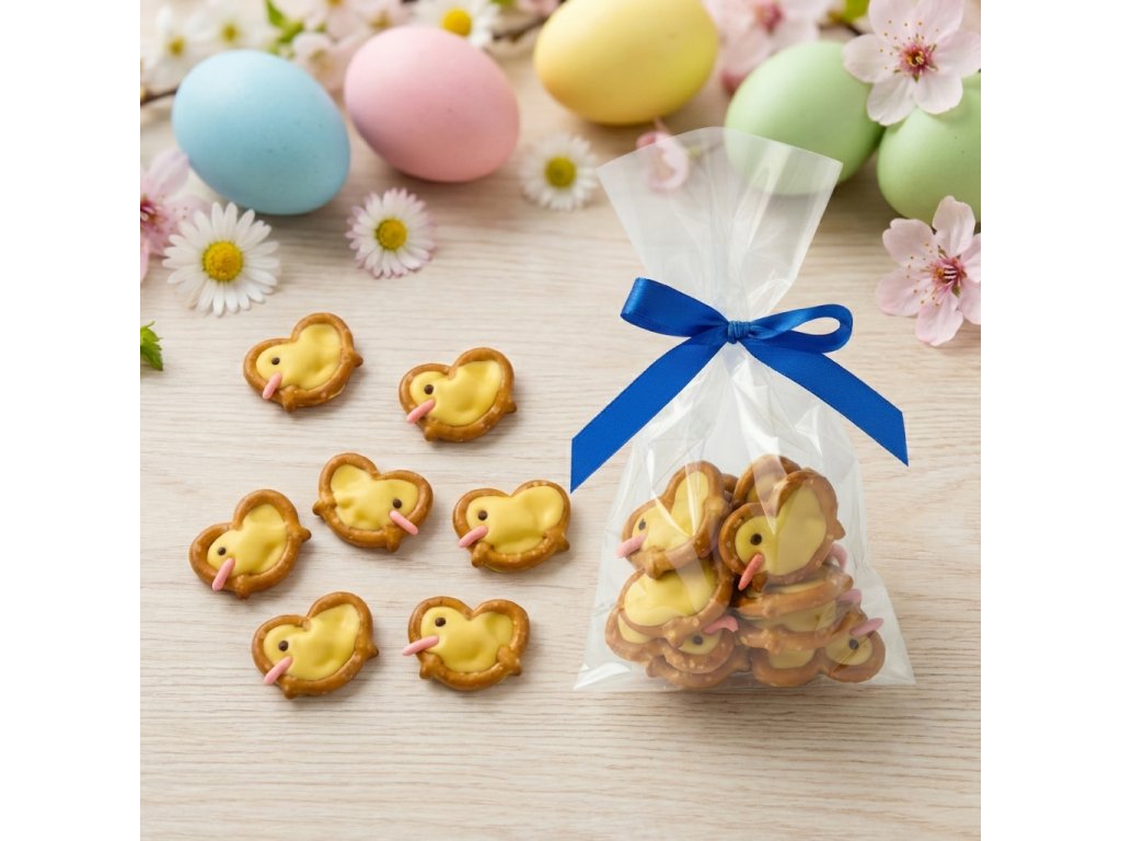 Kuřátka – preclíky v čokoládě jsou veselá sladkost, která zaujme na první pohled a ještě víc při ochutnání. Křupavý preclík obalený v jemné bílé čokoládě s lyofilizovanými meruňkami spojuje sladkou, ovocnou i lehce slanou chuť do originálního zážitku. Každé kuřátko potěší svou hravou podobou, příjemnou křupavostí i jemně meruňkovým tónem, který dodává celé kombinaci svěží nádech. Skvěle se hodí jako drobný dárek, milá pozornost do velikonoční výslužky nebo sladké mlsání ke kávě či čaji. Díky nápaditému vzhledu a vyvážené chuti si je oblíbí děti i dospělí. Originální čokoládová radost z čokoládovny Chocolenka.